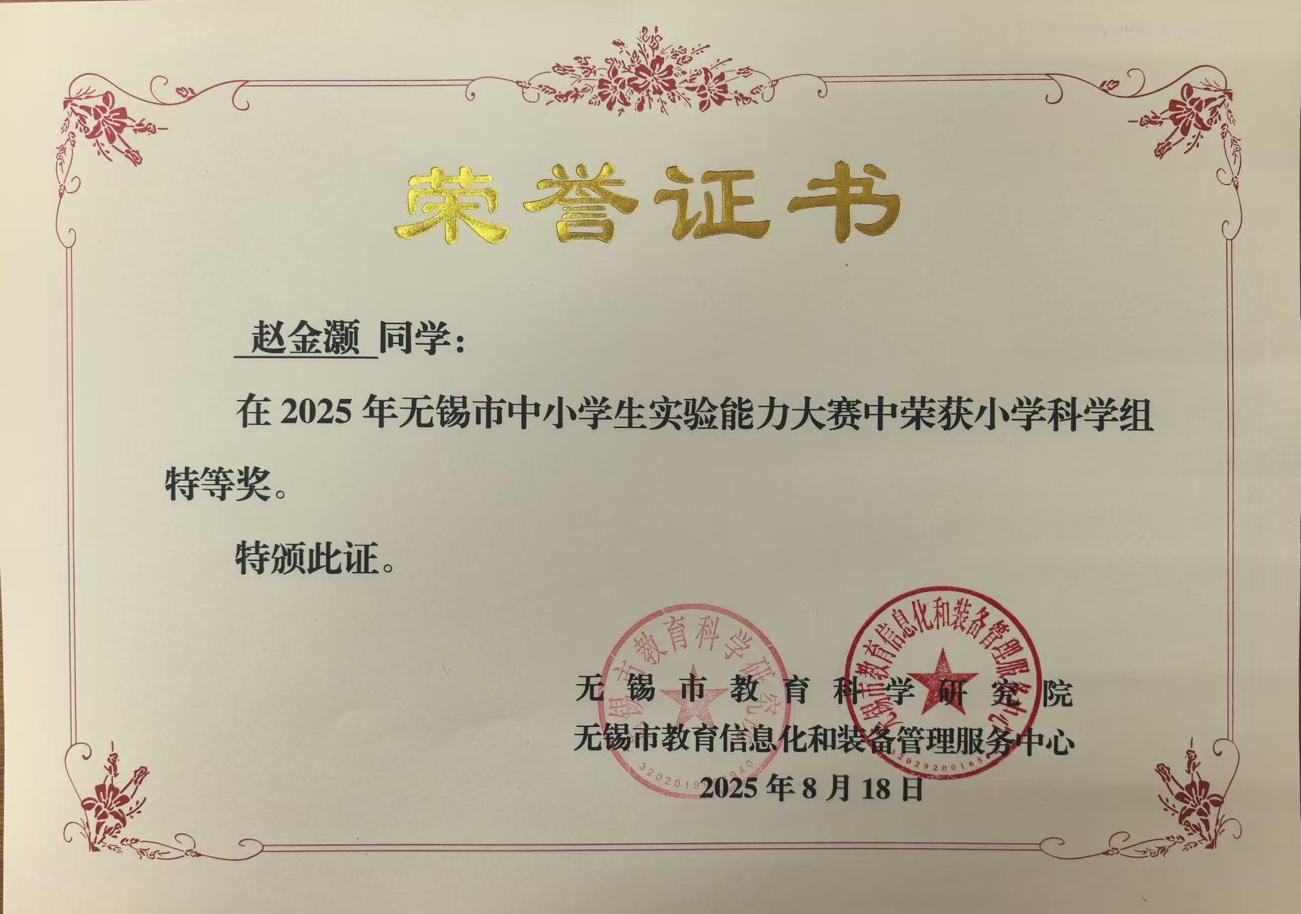 陈健-赵金灏-无锡市中小学生实验能力大赛特等奖