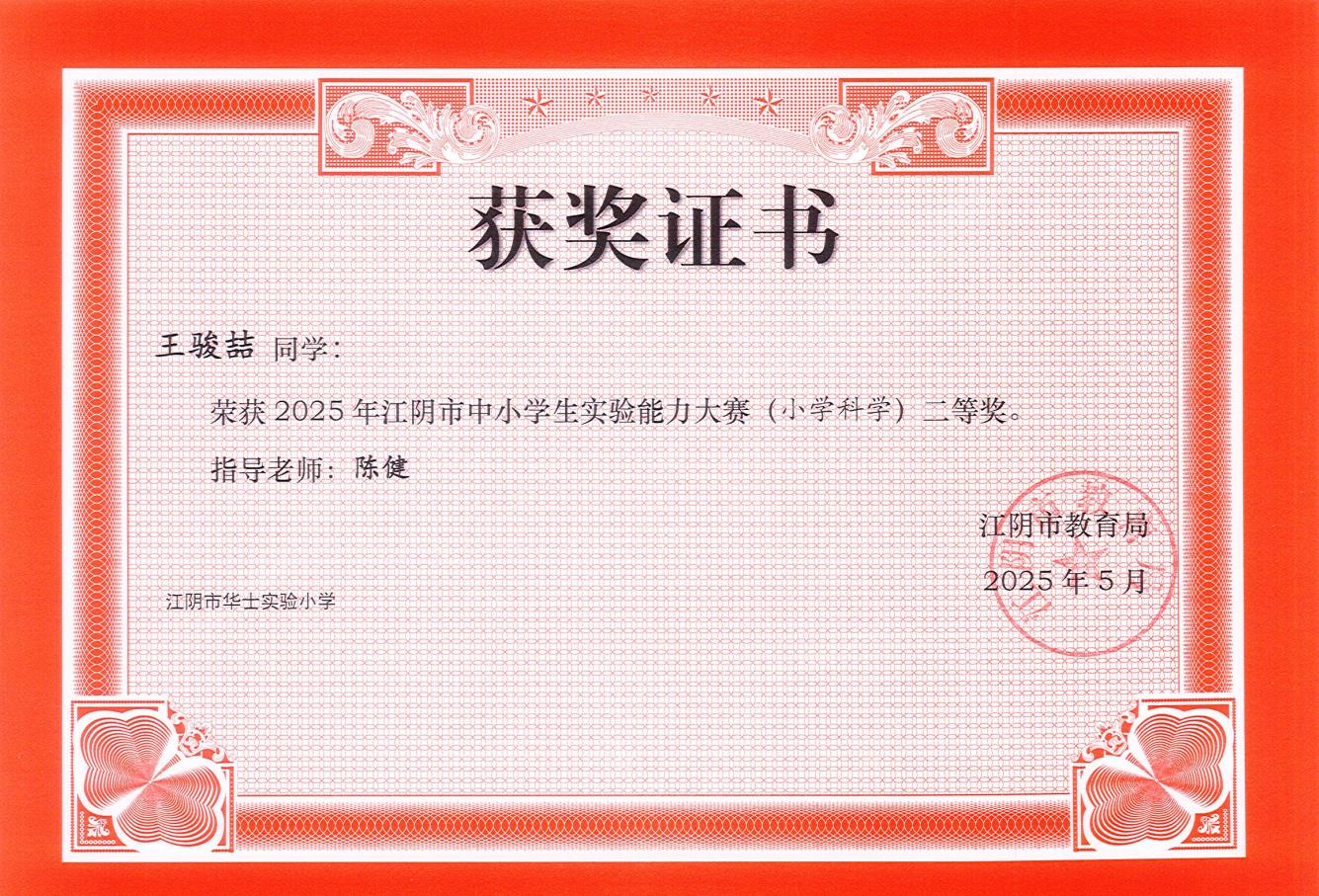 陈健-王骏喆-江阴市中小学生实验能力大赛二等奖
