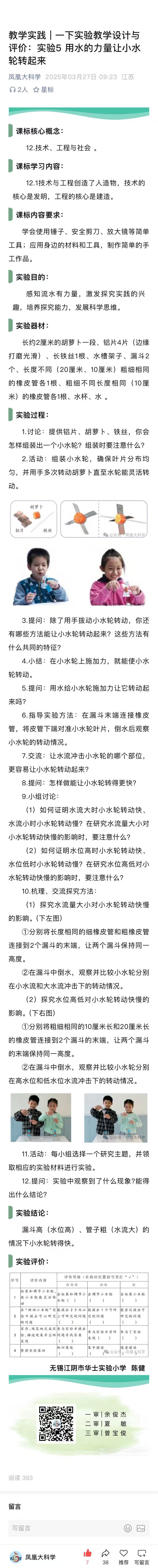 一下实验教学设计与评价:实验5用水的力量让小水轮转起来