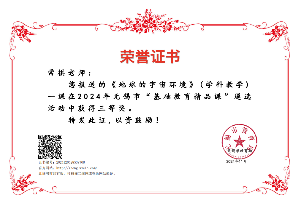常棋老师无锡市2024年“基础教育精品课”评选活动中荣获三等奖