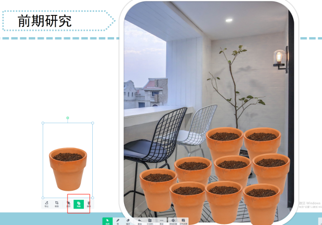 3. 提问:假设我们在这个阳台上,用这个花盆作为容器摆布应该怎么摆?