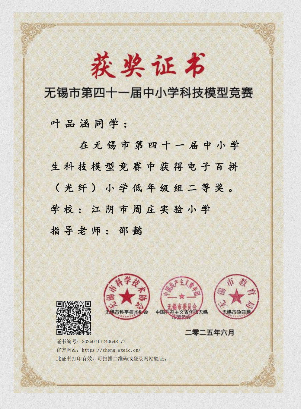 邵懿+陆锦晗无锡实验能力大赛二等奖