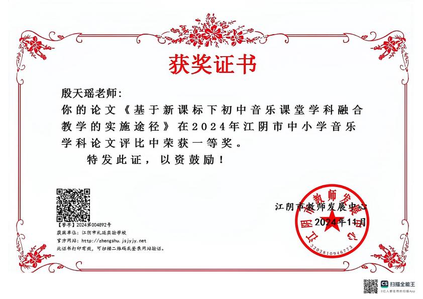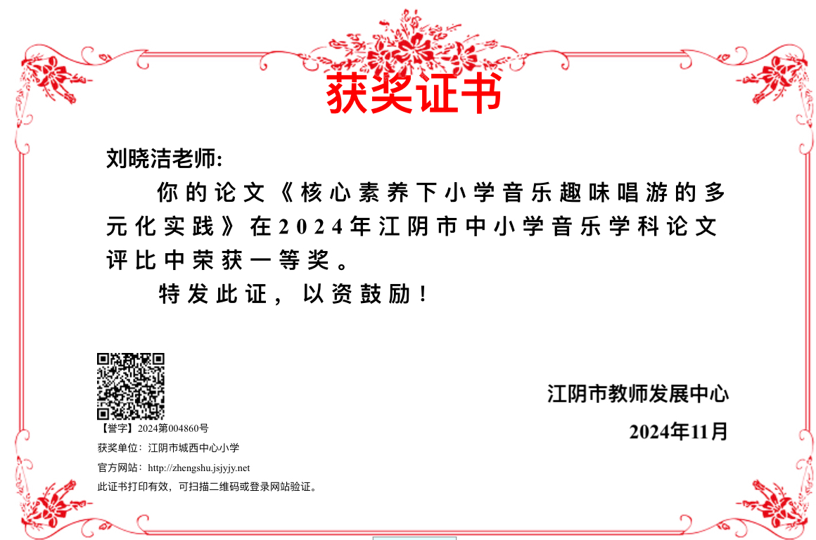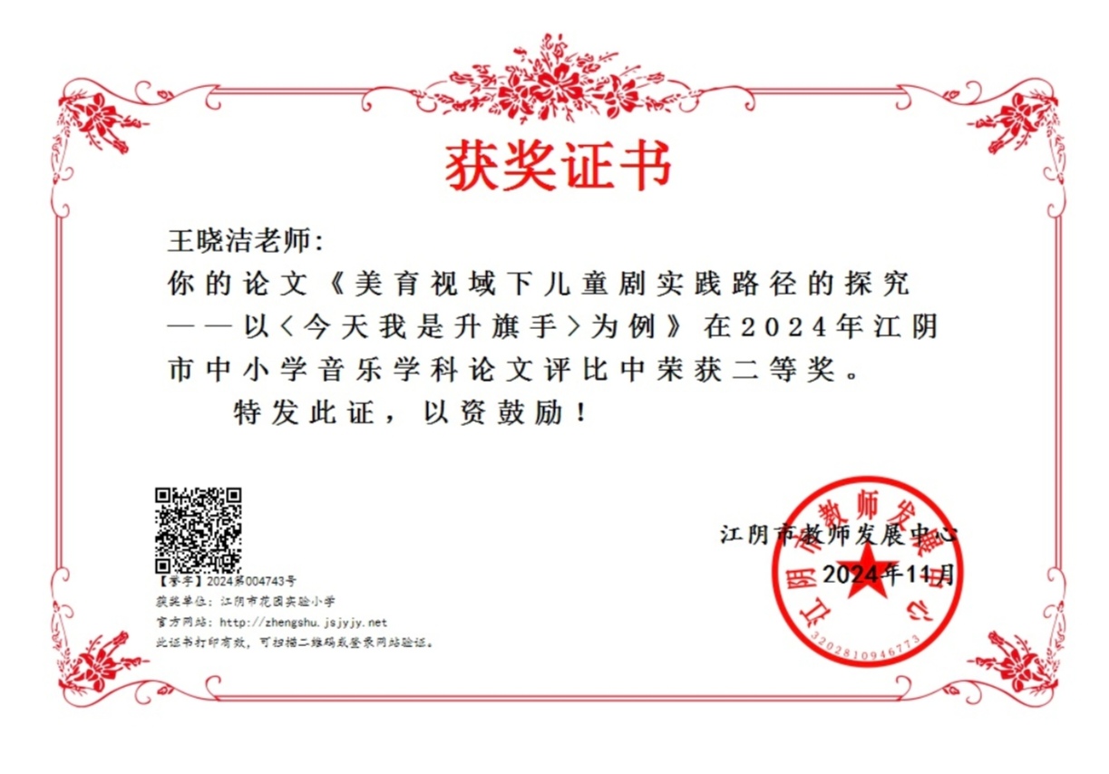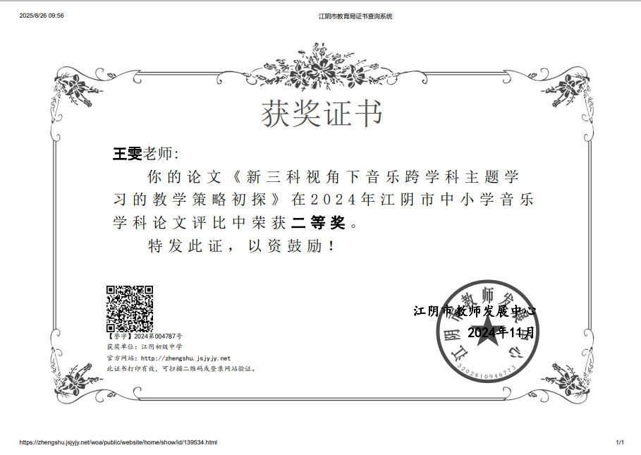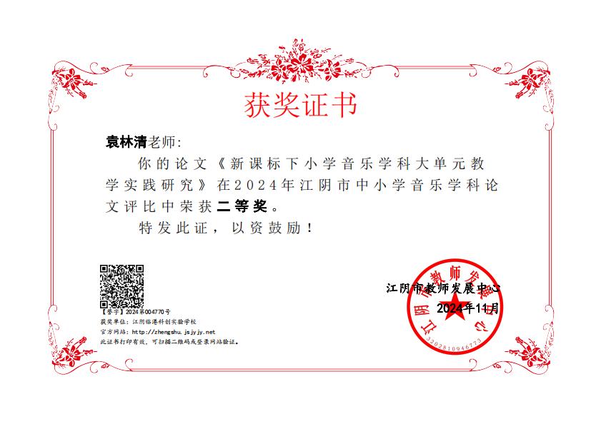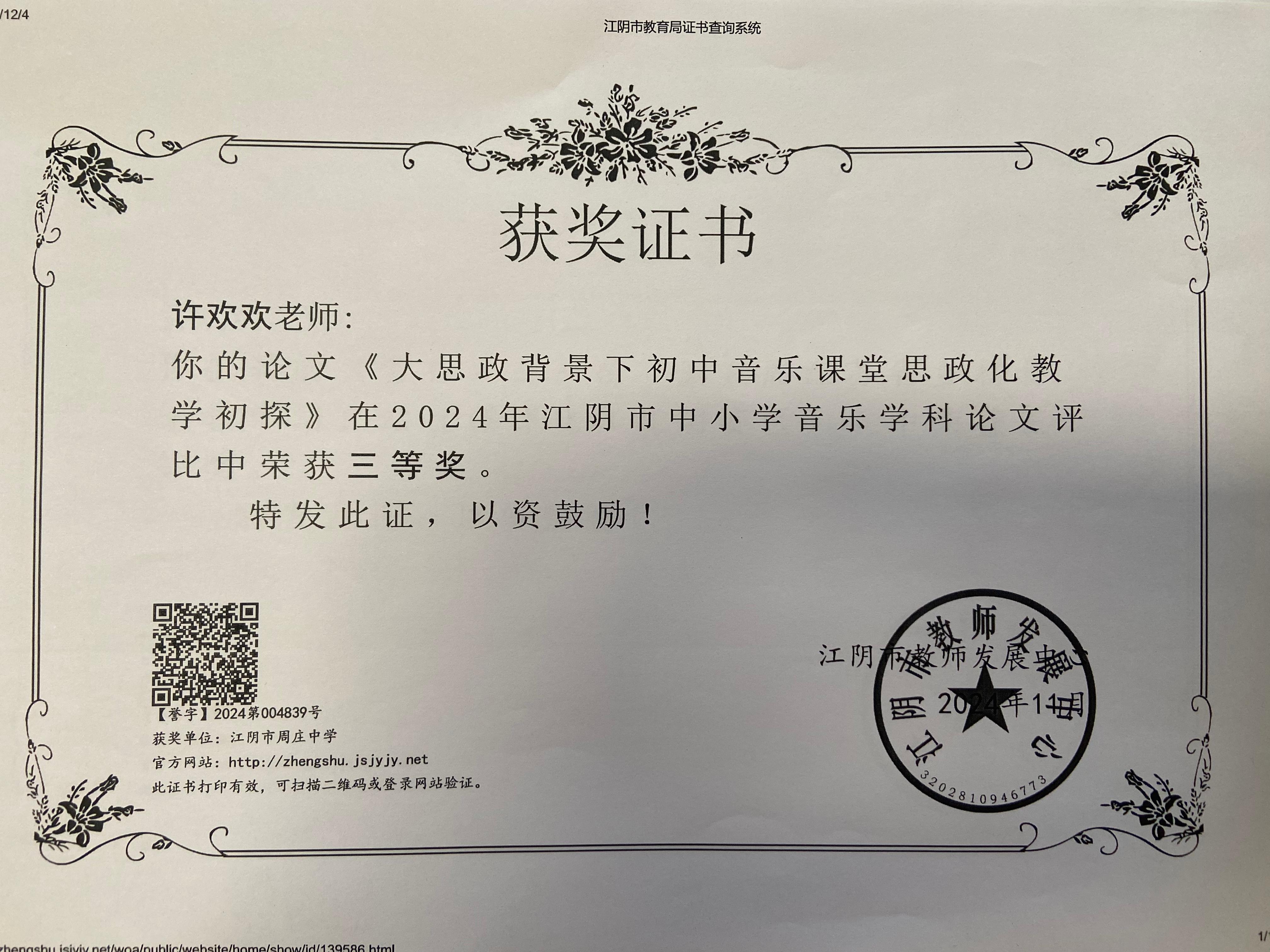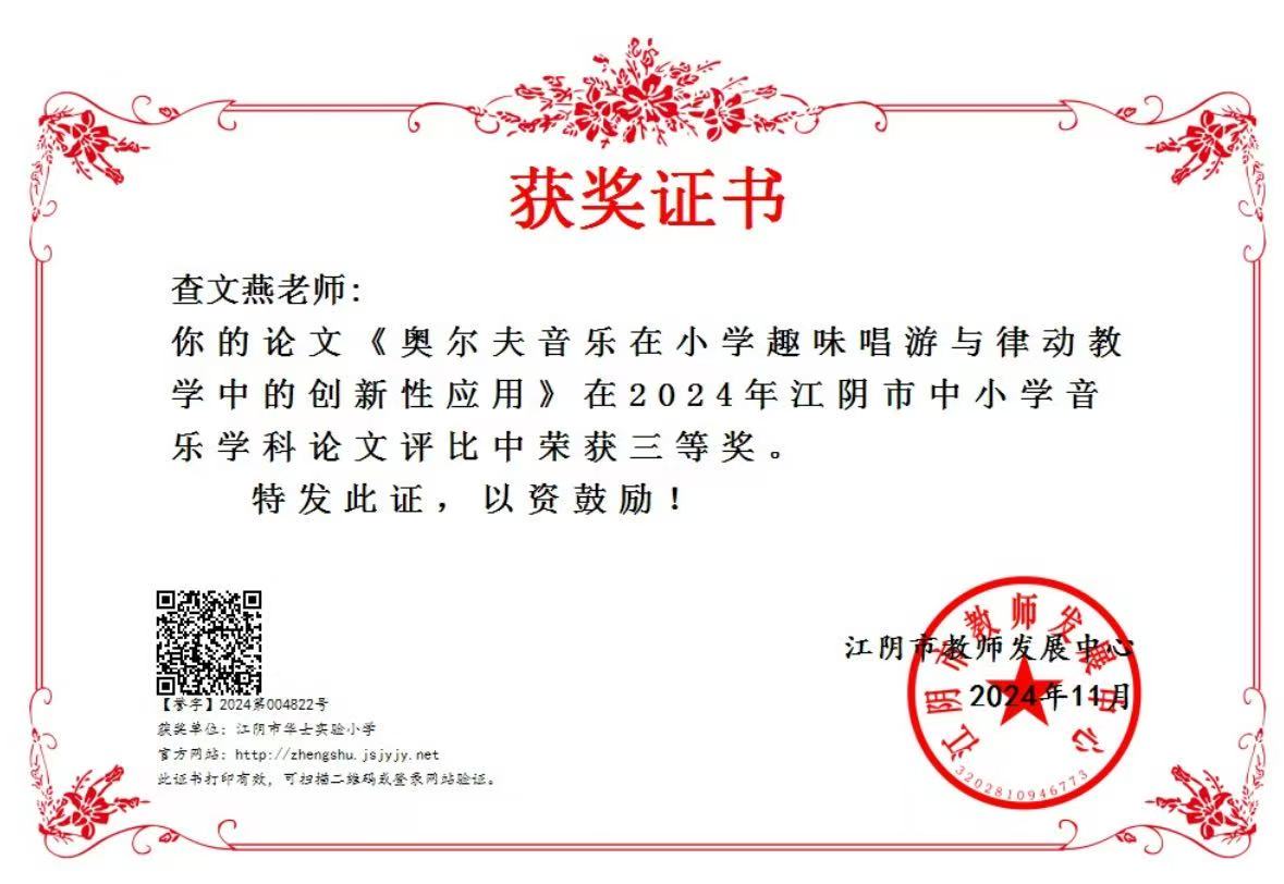 2024.9-2025.9 江阴市中小学音乐学科论文评比:一等奖3人,二等奖4人,三等奖2人 2025-09-19