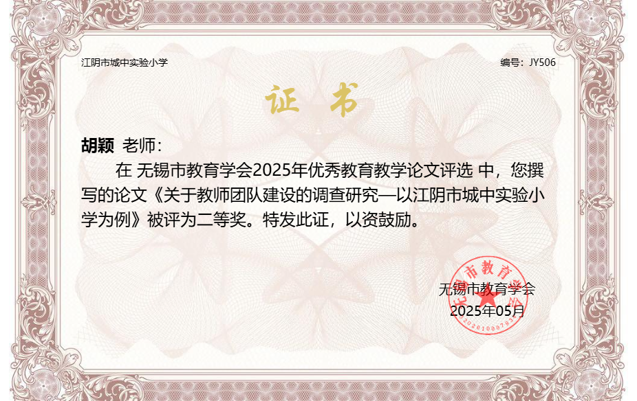 202505论文《关于教师团队建设的调查研究一以江阴市城中实验小学为例》.PNG 2025-09-19