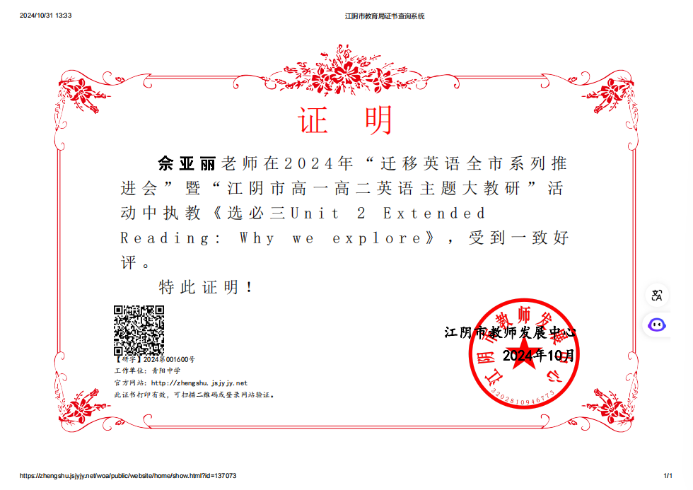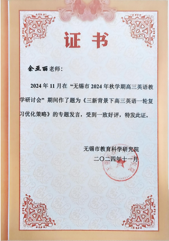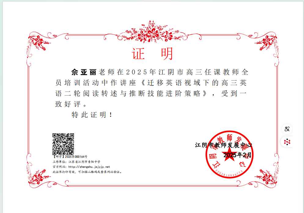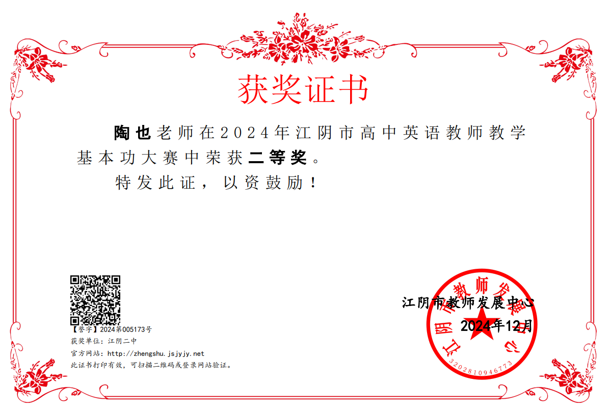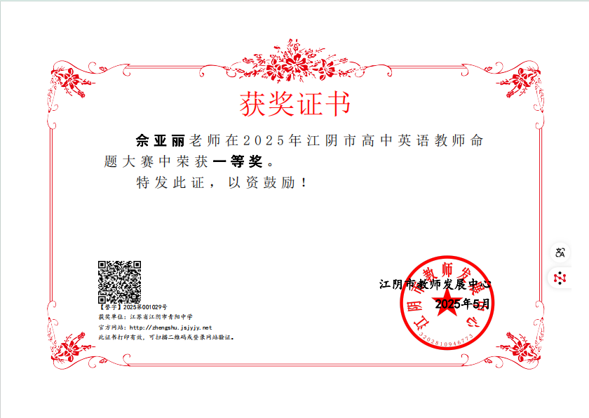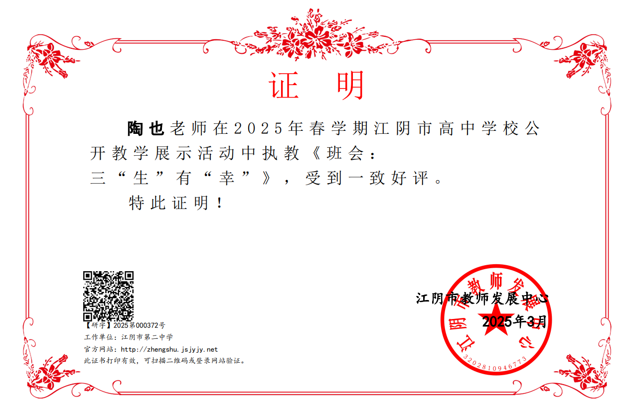 所在单位:江阴市教育局