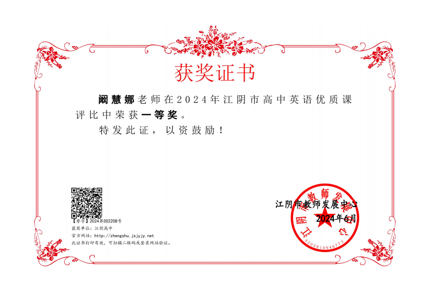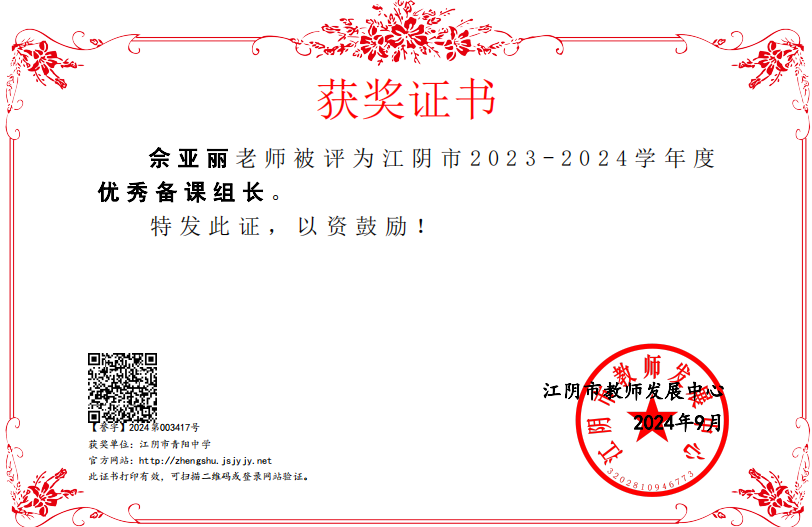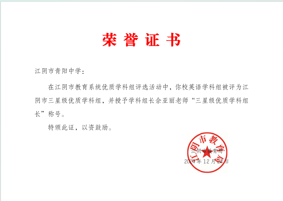 评比部门:江阴市教育局