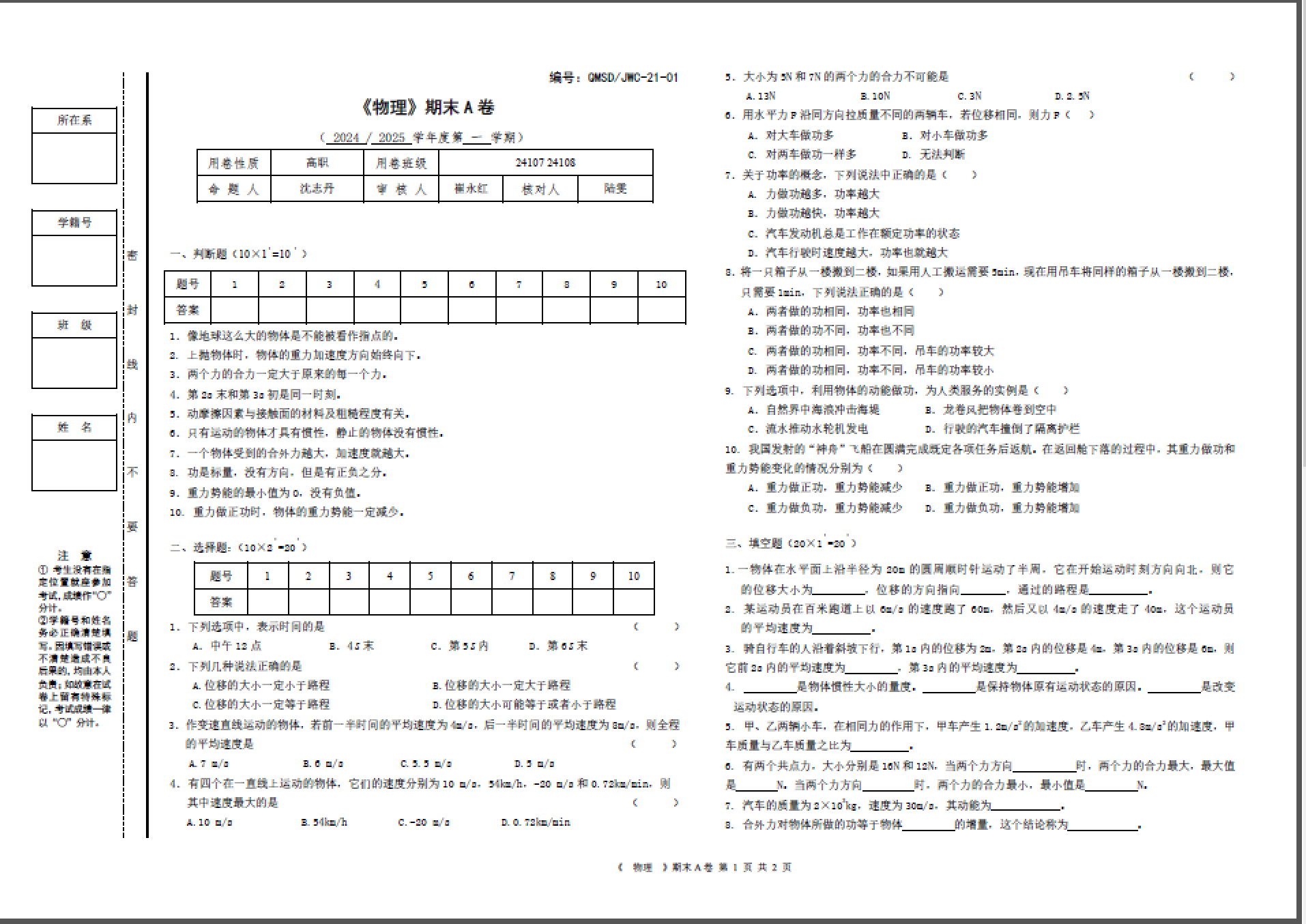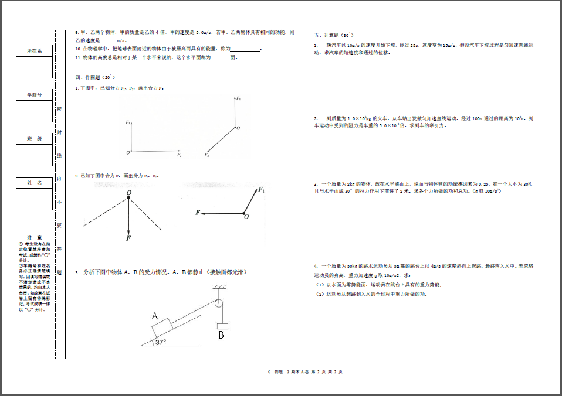 网站类目:资源共享 资源学科:物理 资源类别:试卷 资源年级:高一 选用情况:学科网未选用 资源内容:试卷