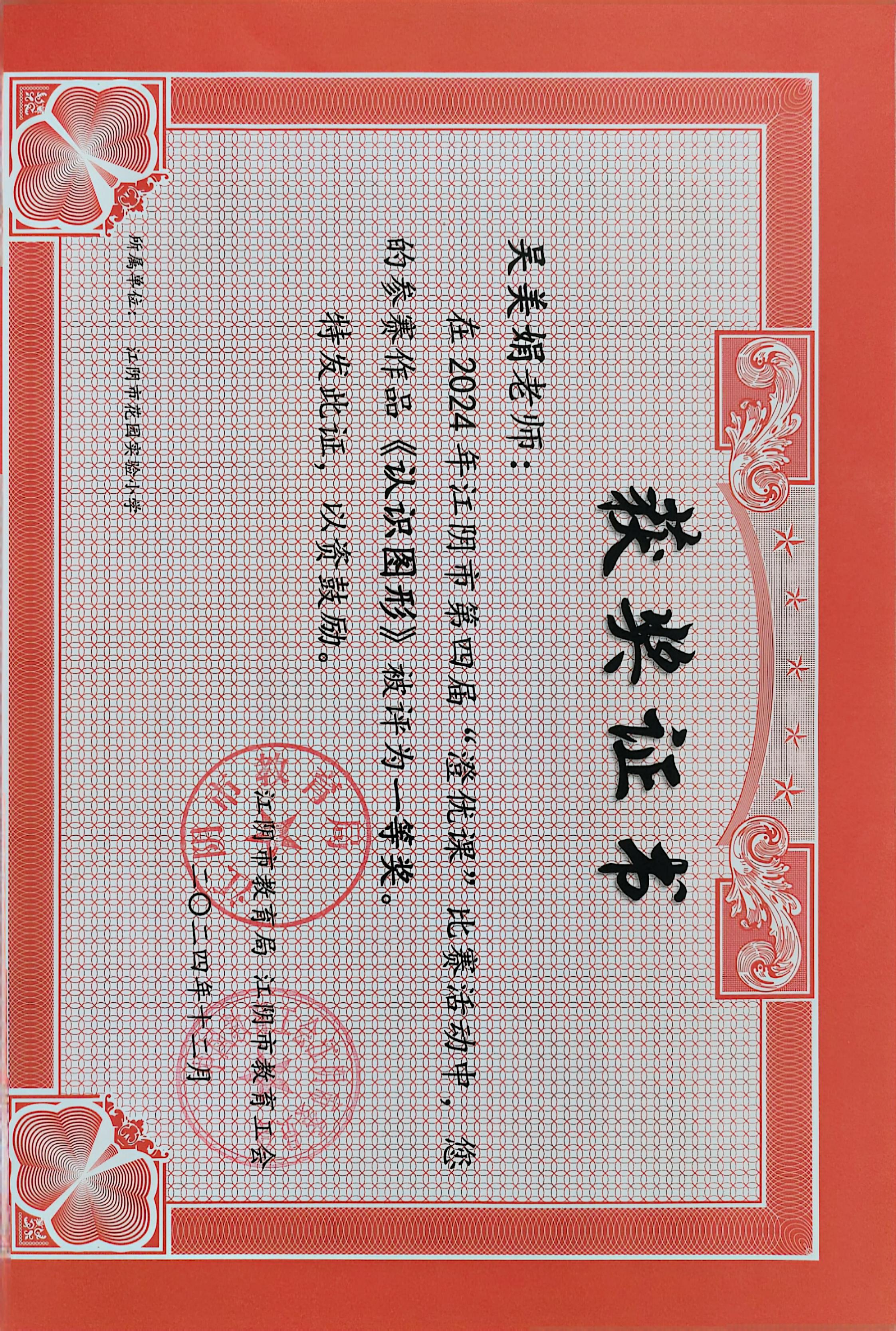 评比部门:江阴市教育局、江阴市教育工会