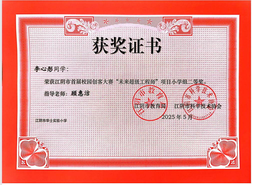 顾惠洁+李心彤+江阴市校园创客大赛二等奖