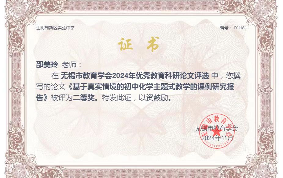 无锡教育学会教育科研论文二等奖 2025-09-19
