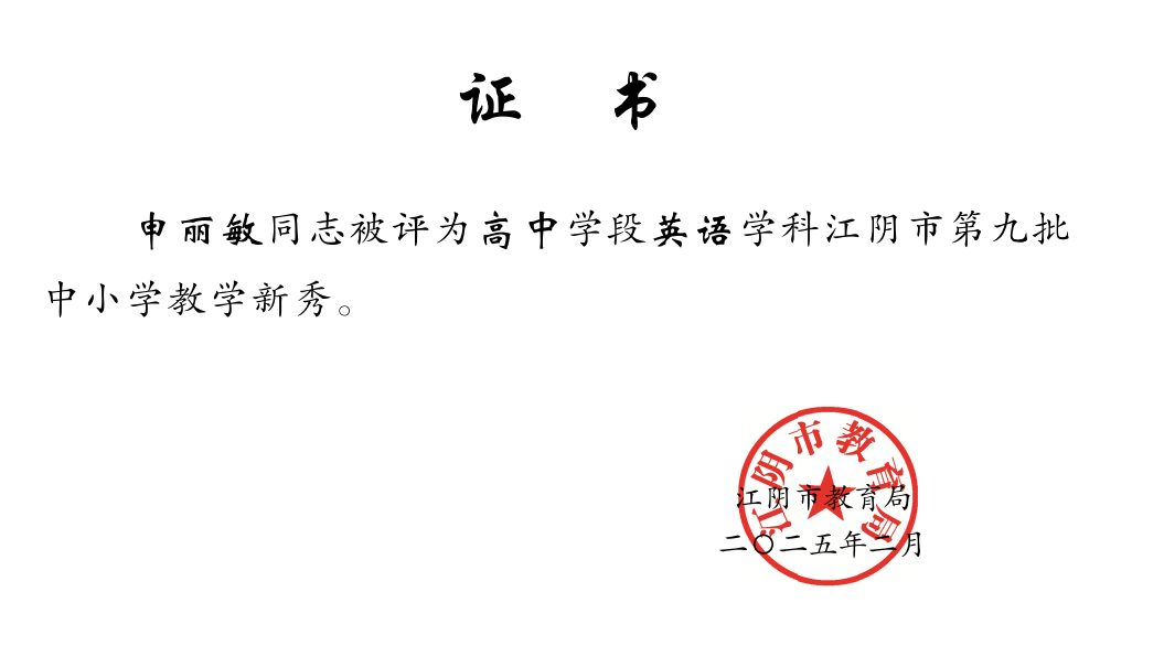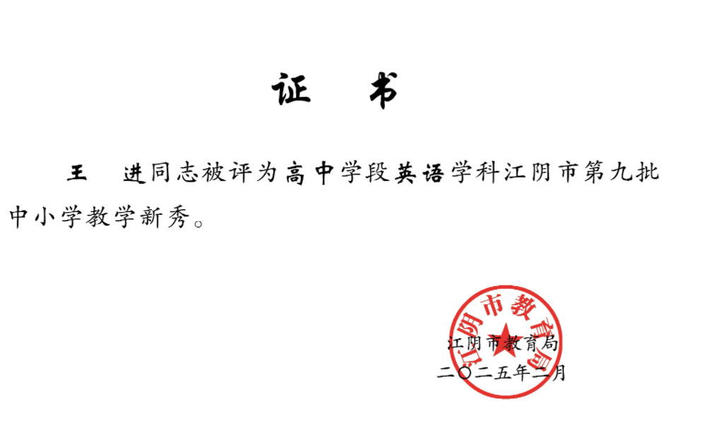 学科荣誉提升:王进等多位老师获得江阴市教学新秀称号