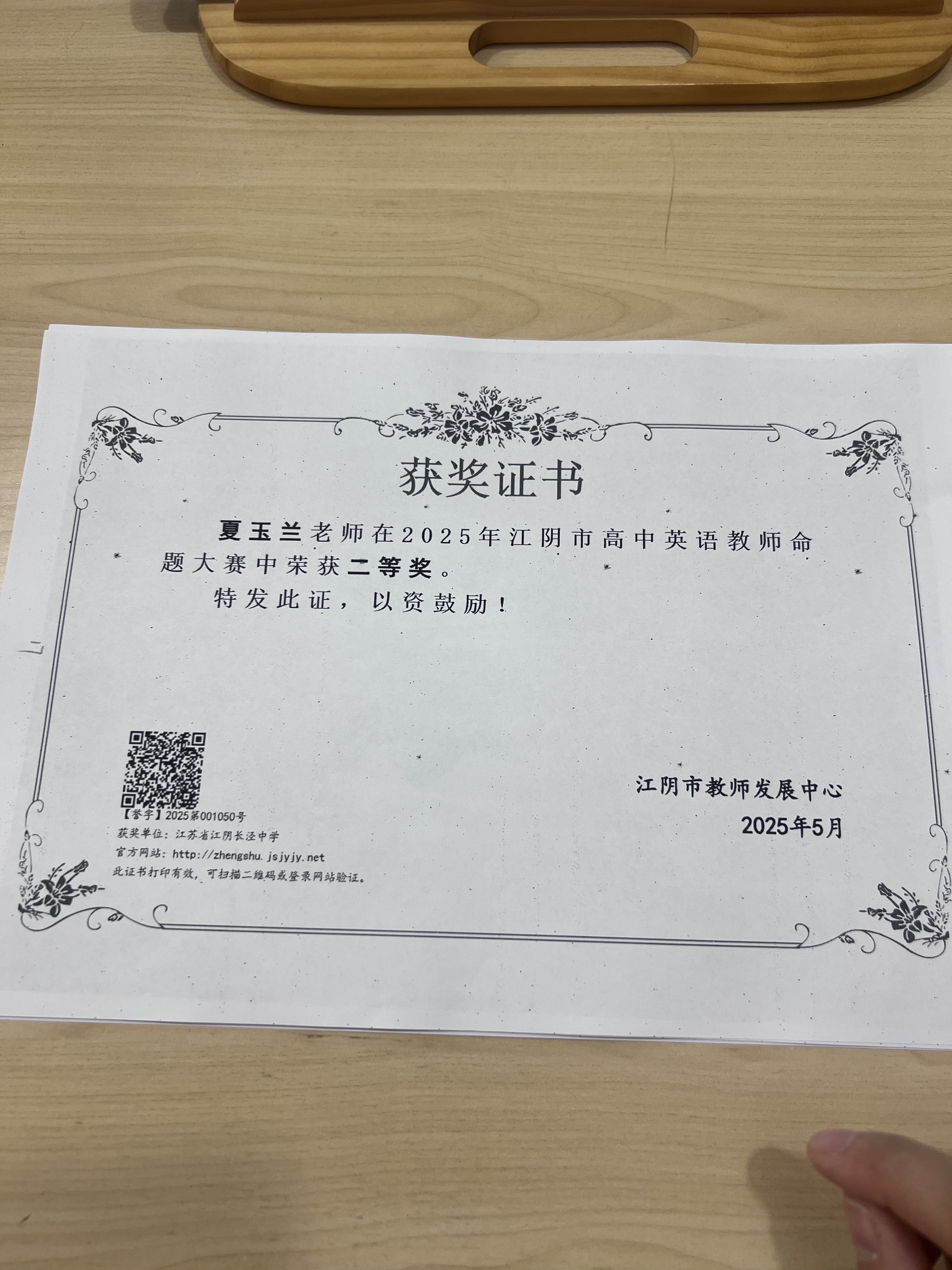命题大赛获奖情况:夏玲佳等多名教师获江阴市命题大赛一、二等奖