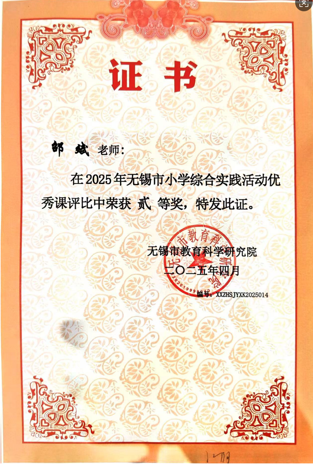 邵斌在2025年无锡市小学综合实践活动优秀课评比中获二等奖 2025-09-20