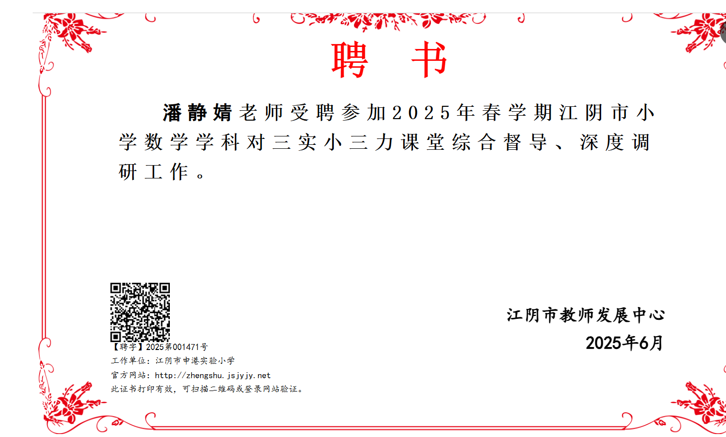 潘静婧受邀参加2025年春学期江阴市小学数学学科综合督导