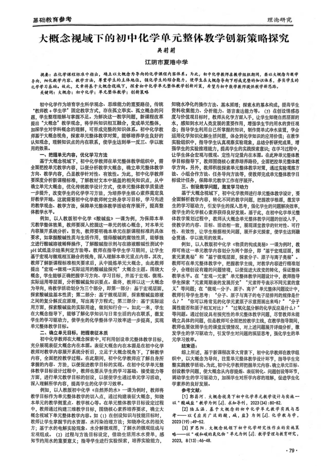 《大概念视域下的初中化学单元整体教学创新策略探究》 2025-09-20