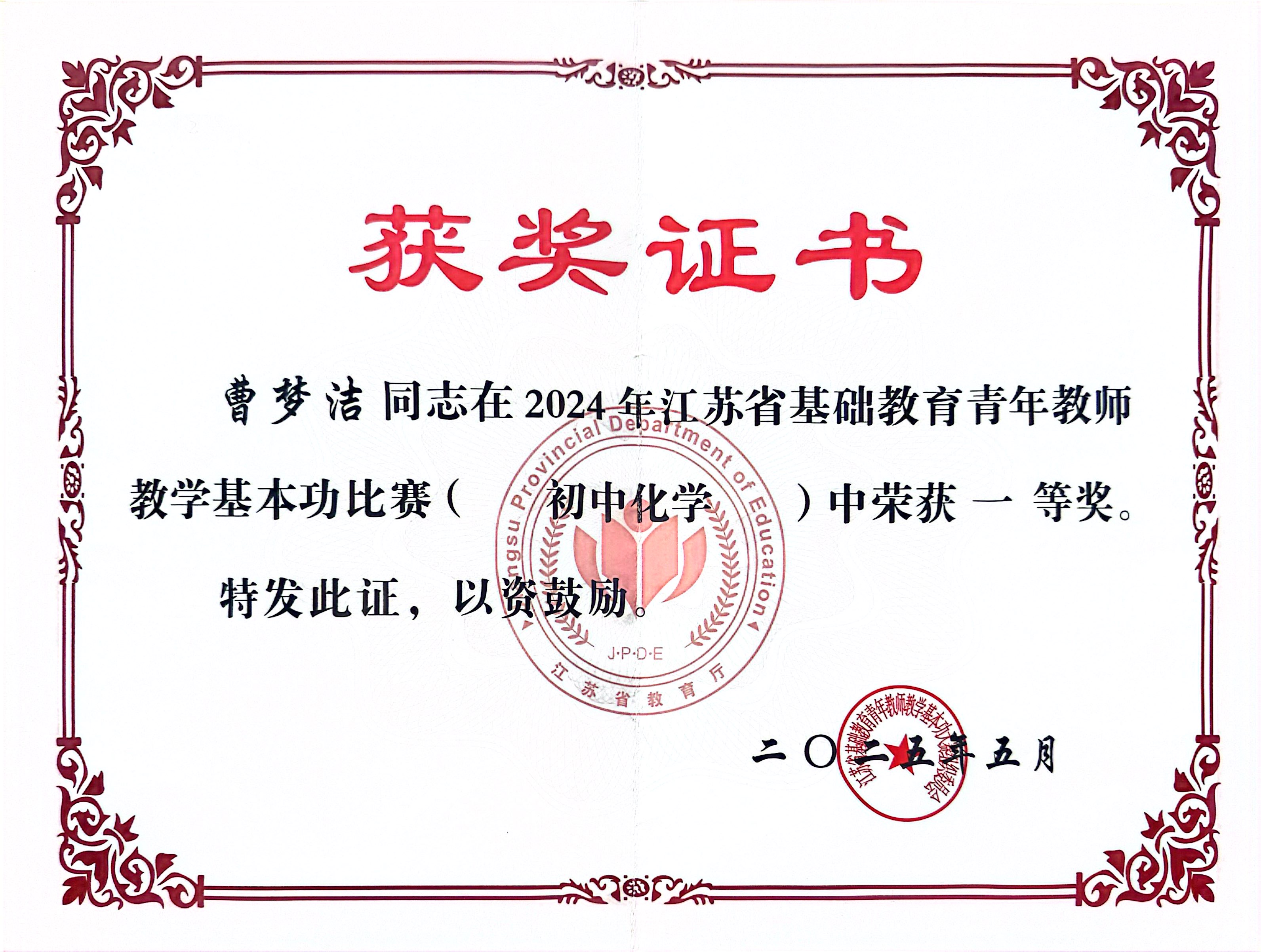成员曹梦洁江苏省初中化学青年教师教学基本功大赛一等奖