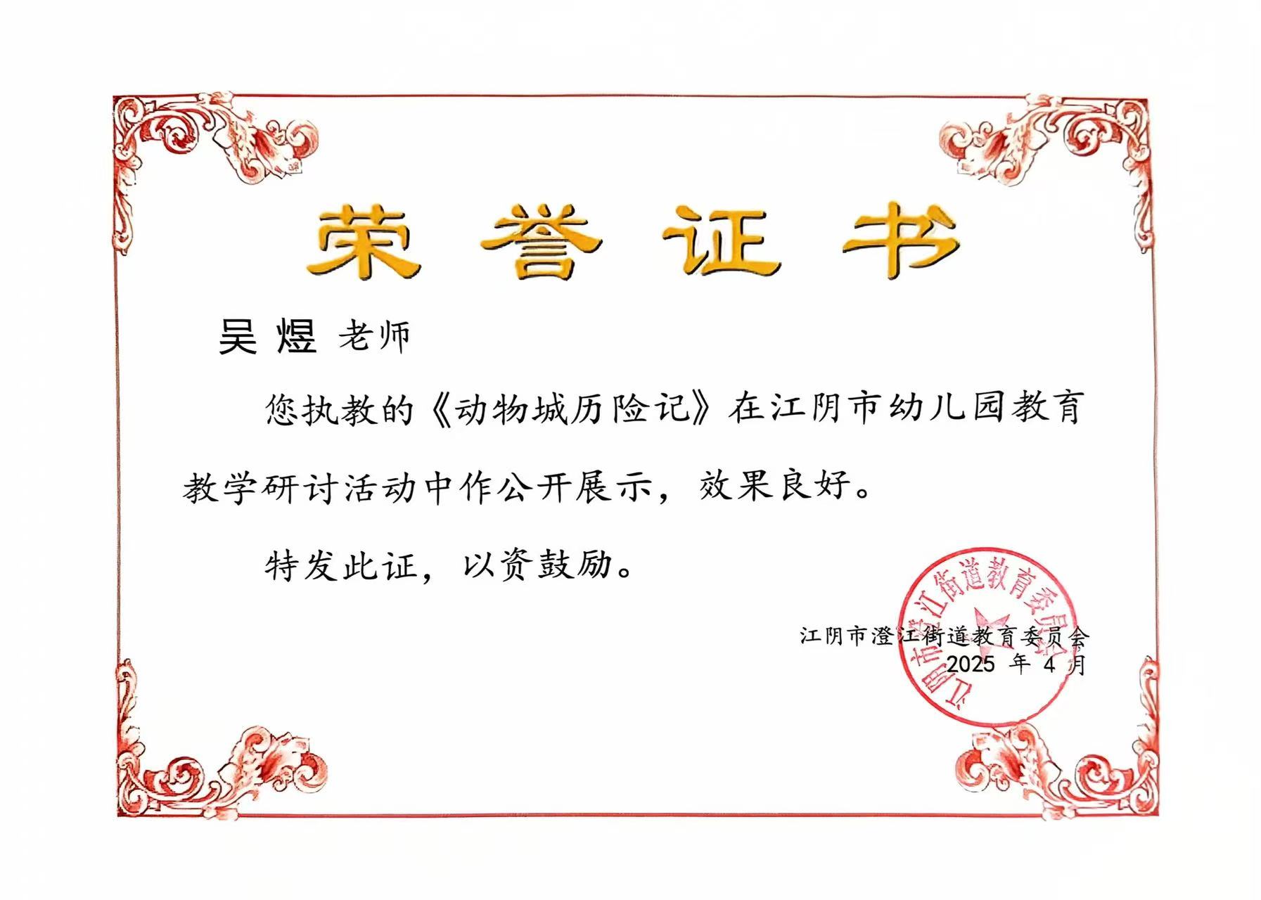 送教下乡:吴煜老师在江阴市幼儿园教育教学研讨活动中公开了《动物城历险记》