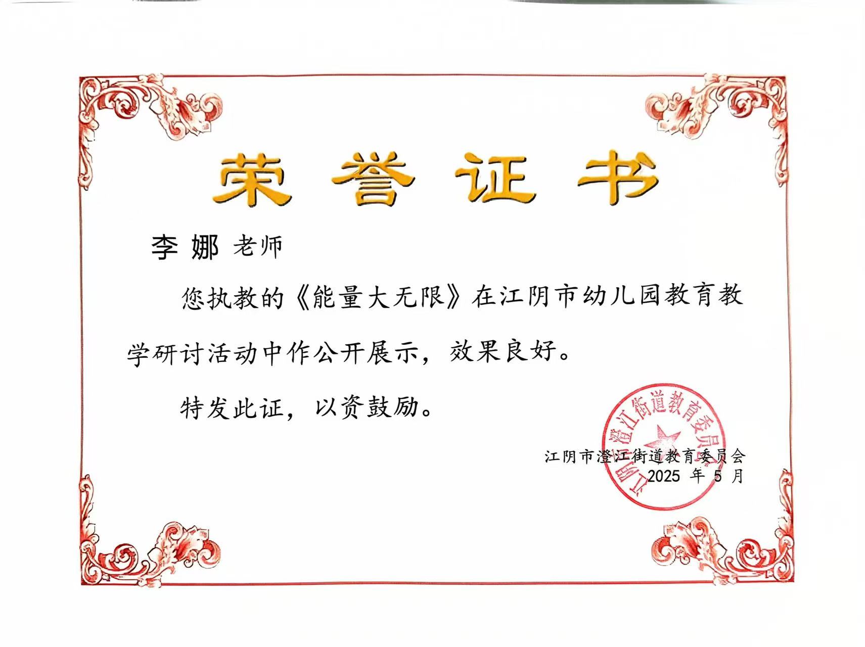 送教下乡:李娜老师在江阴市幼儿园教育教学研讨活动中公开了《能量大无限》 2025-09-21