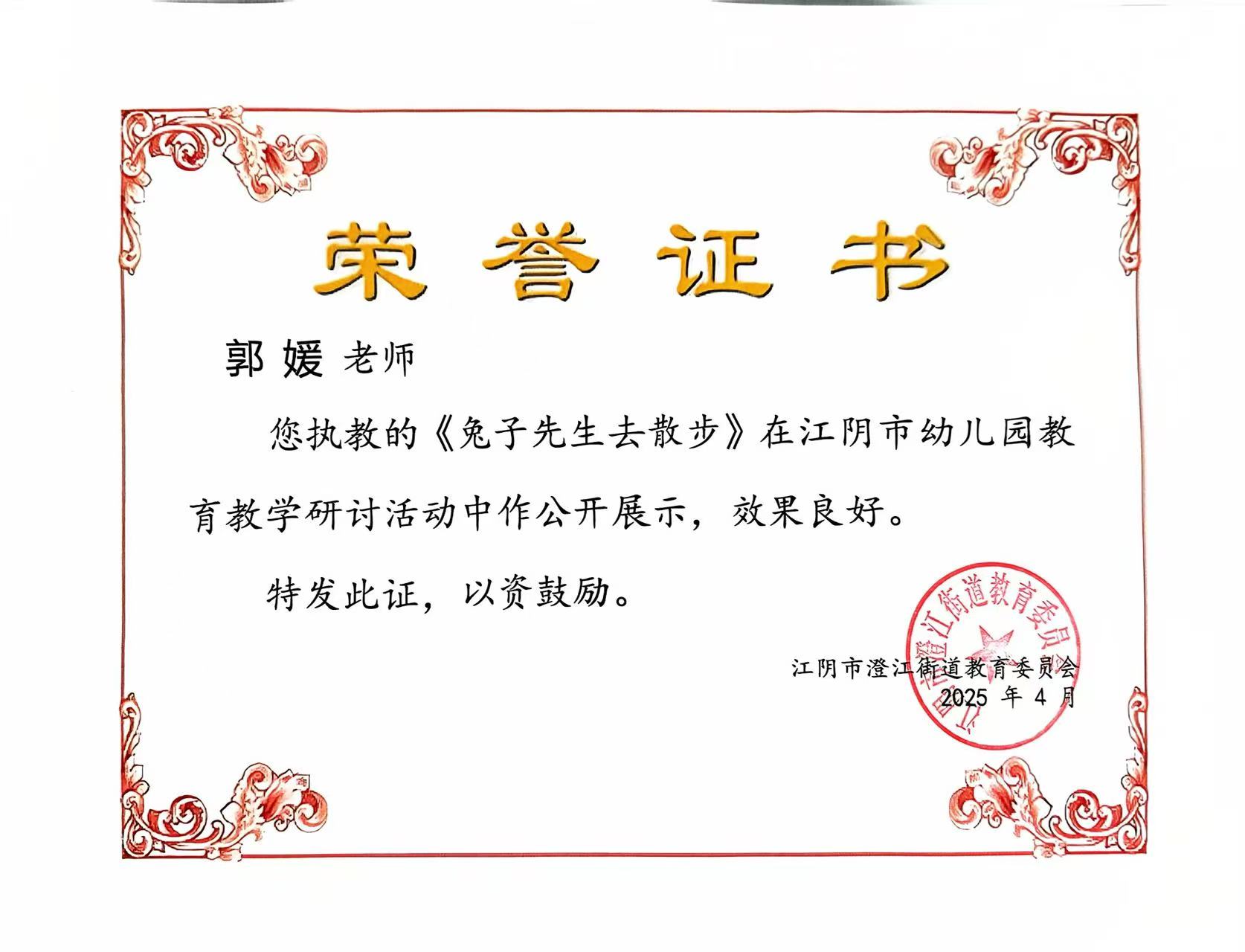 送教下乡:郭媛老师在江阴市幼儿园教育教学研讨活动中公开了《兔子先生去散步》