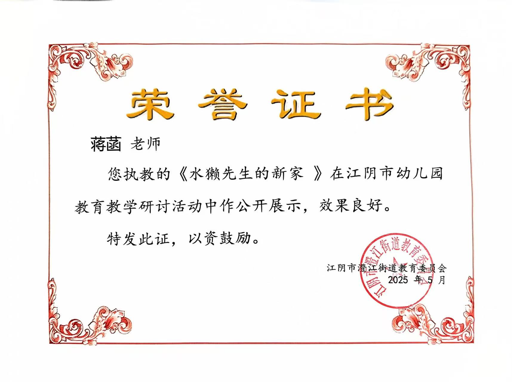 所在单位:江阴市滨江实验幼儿园