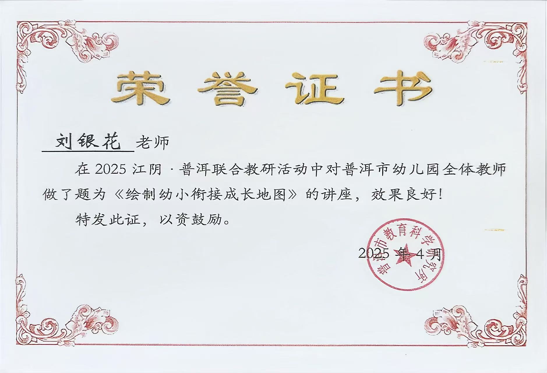 刘银花对普洱市幼儿园全体教师做了题为《绘制幼小街接成长地图》的讲座