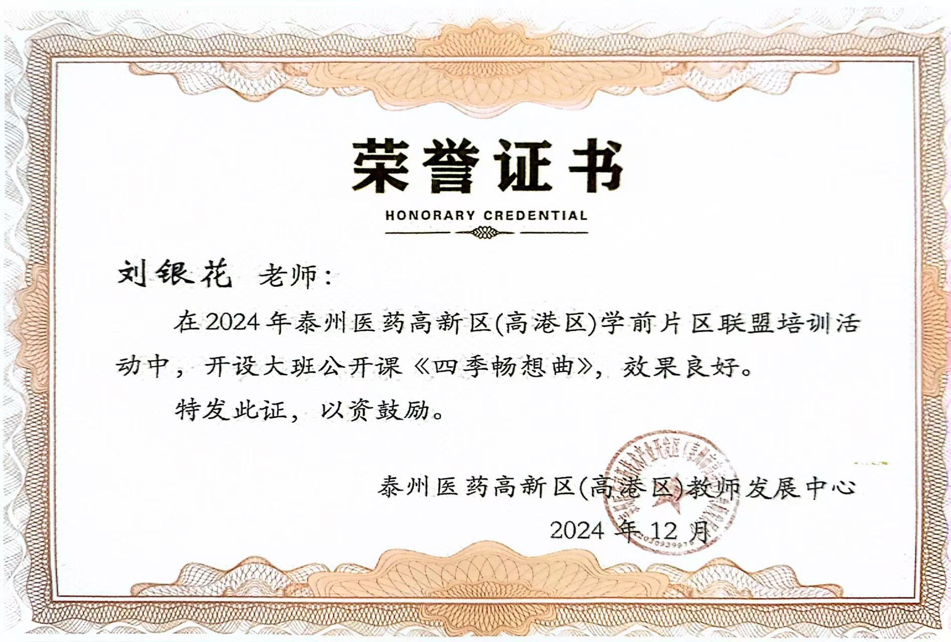 刘银花老师在2024年泰州医药高新区(高港区)学前片区联盟培训活动中开设大班公开课《四季畅想曲》 2025-09-21