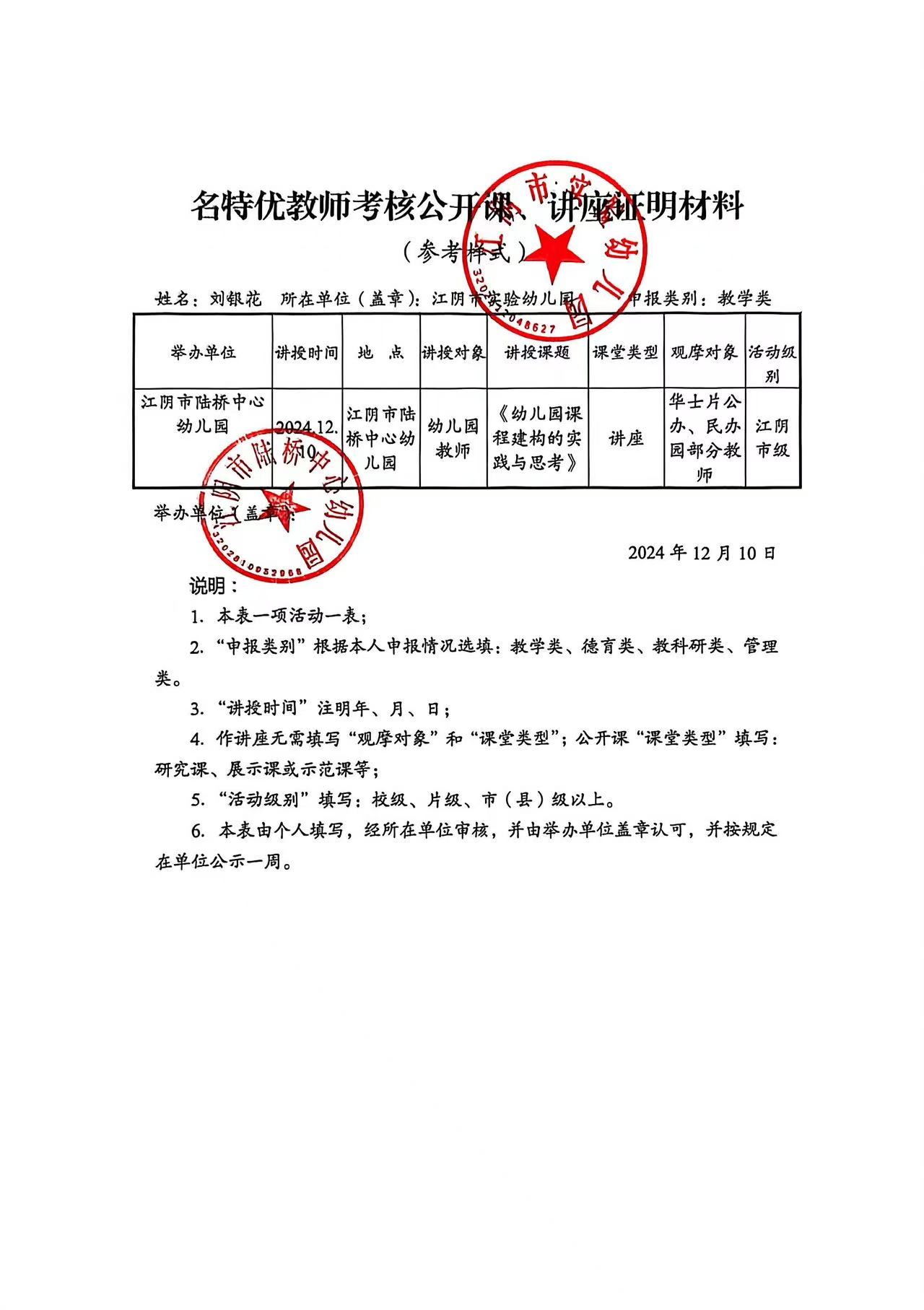 刘银花老师向江阴市陆桥中心幼儿园全体教师作讲座《幼儿园课程建构的实践与思考》