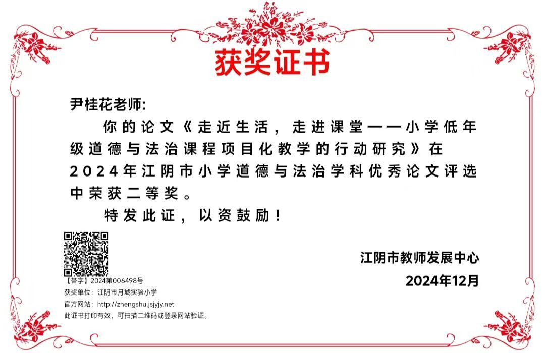 江阴市顾海英德育名师工作室——成员尹桂花获2024年江阴市道德与法治学科优秀论文二等奖