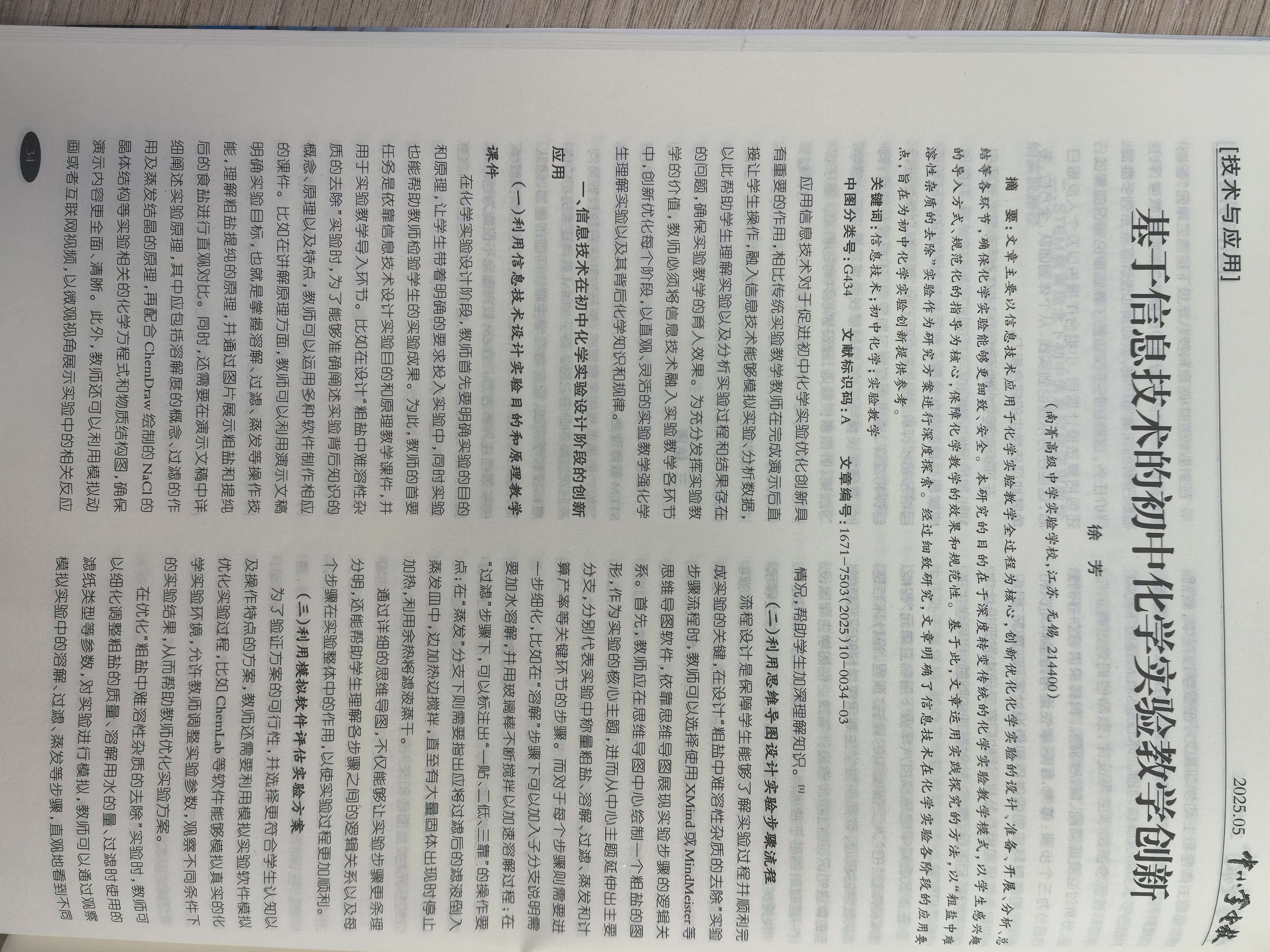 基于信息技术的初中化学实验教学创新 2025-09-22