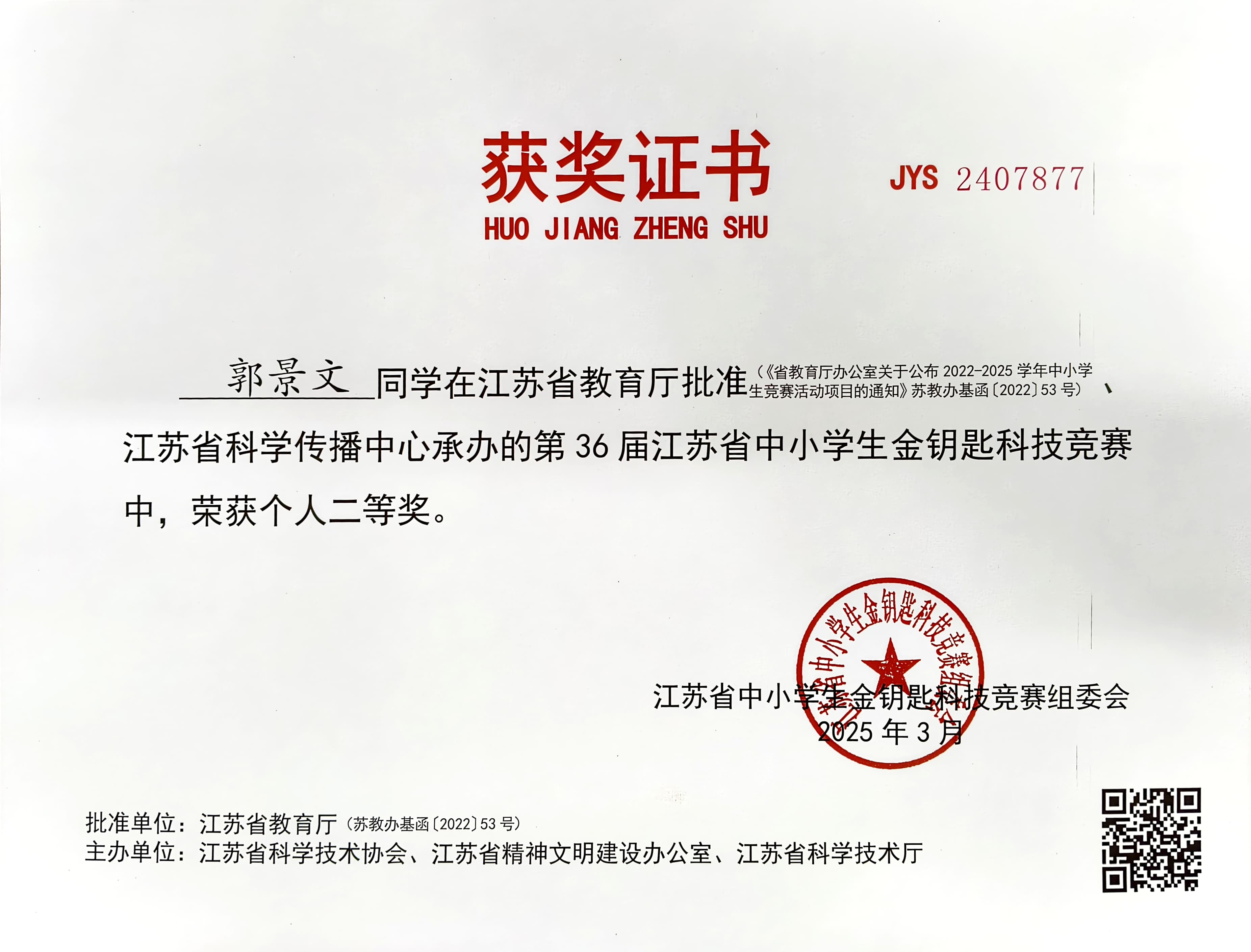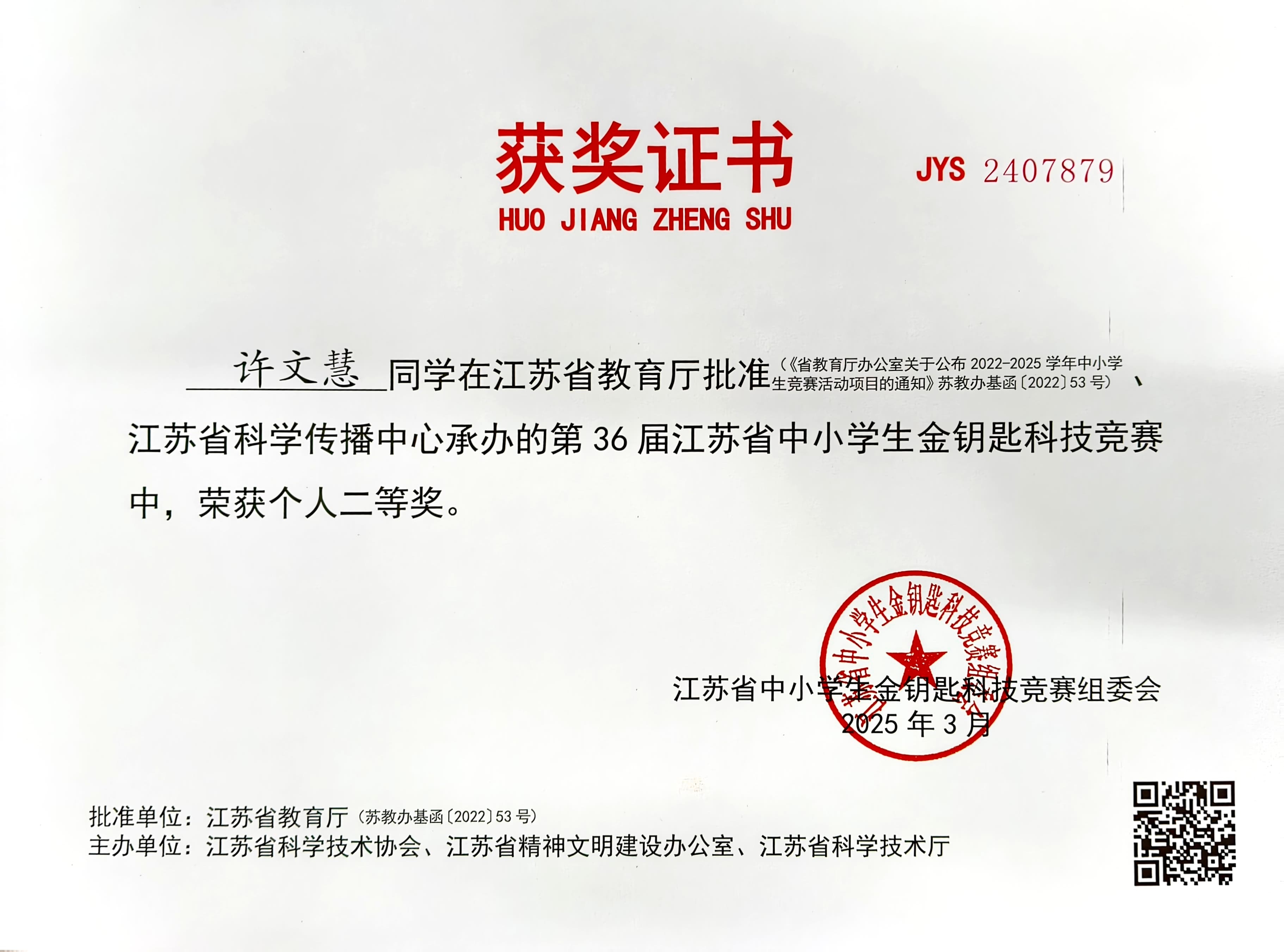 段愉悦+辅导14名学生参加江苏省金钥匙竞赛获奖