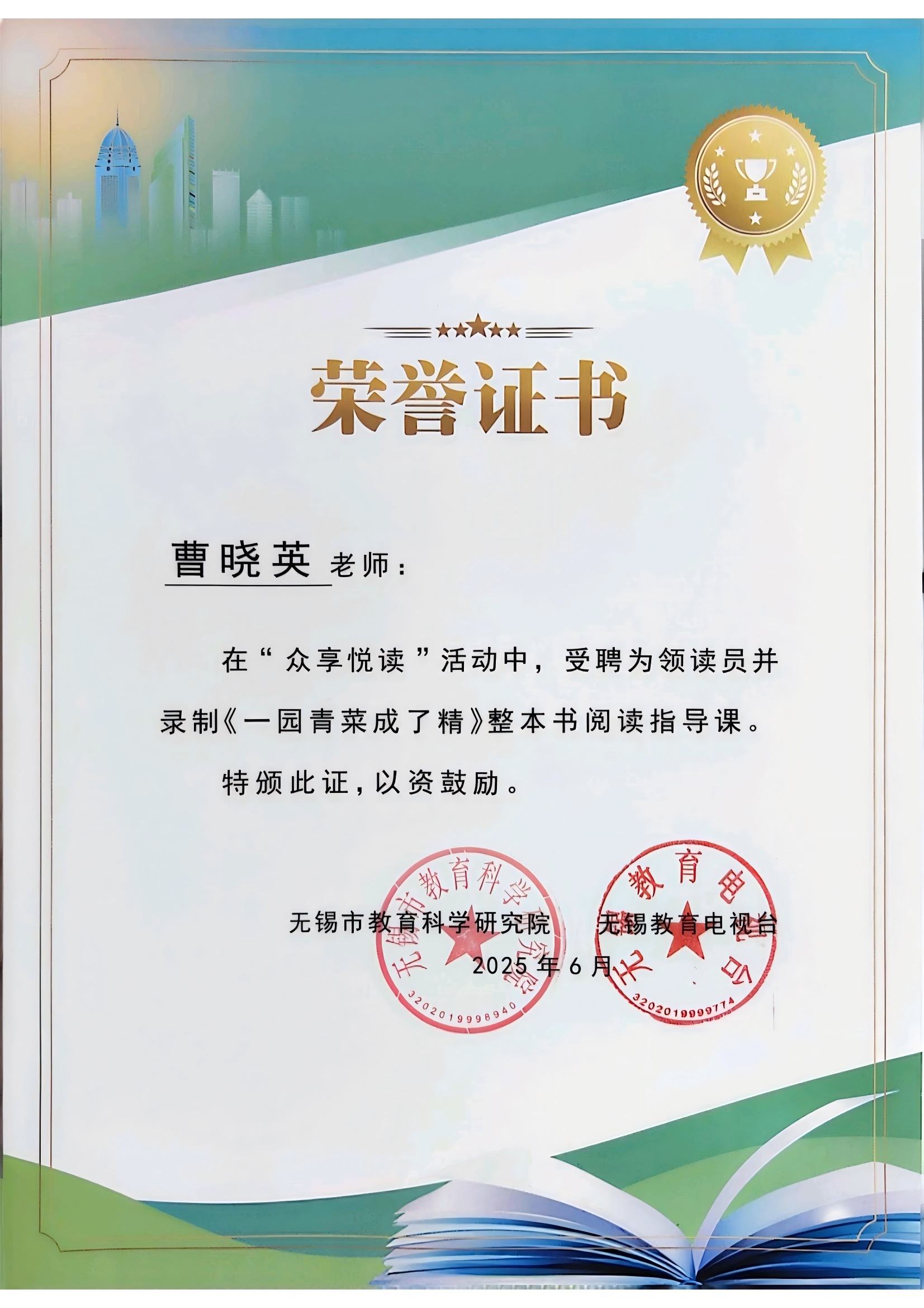 网站类目:课堂实录 活动级别:市级 活动类别: 执教姓名:曹晓英 所在单位:江阴市教育局 执教时间:2025-09-22 执教地点:无锡教育电视台 执教内容:《一园青菜成了精》 参加对象: