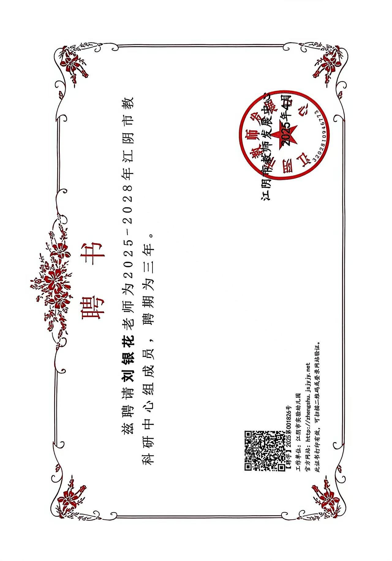 刘银花老师被聘为2025-2028年江阴市教科研中心组成员 2025-09-22