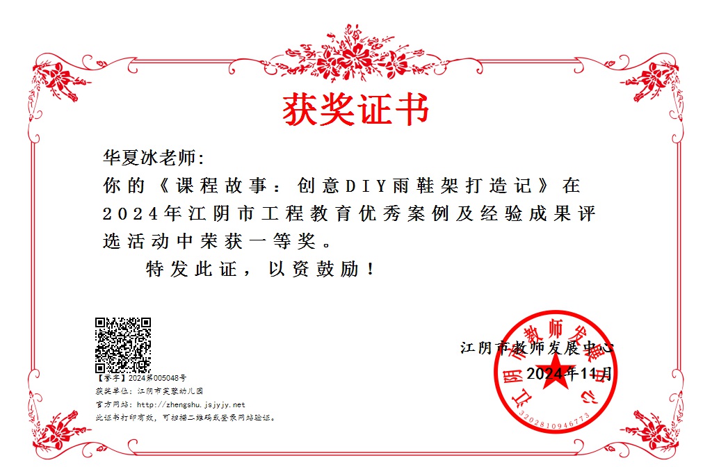 华夏冰老师的课程故事在2024年江阴市工程教育优秀案例评选活动中获一等奖 2025-09-22