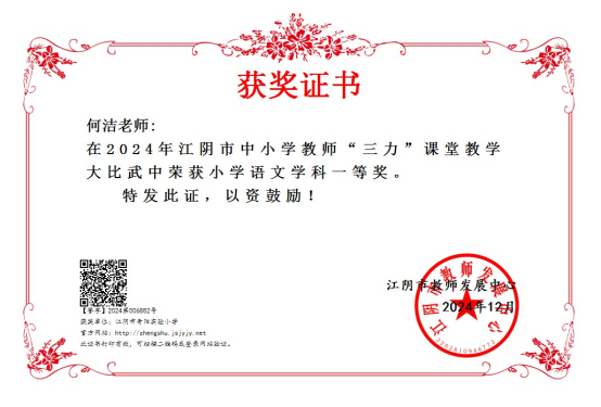 江阴市季勇名师工作室——成员何洁“三力”课堂教学大比武一等奖