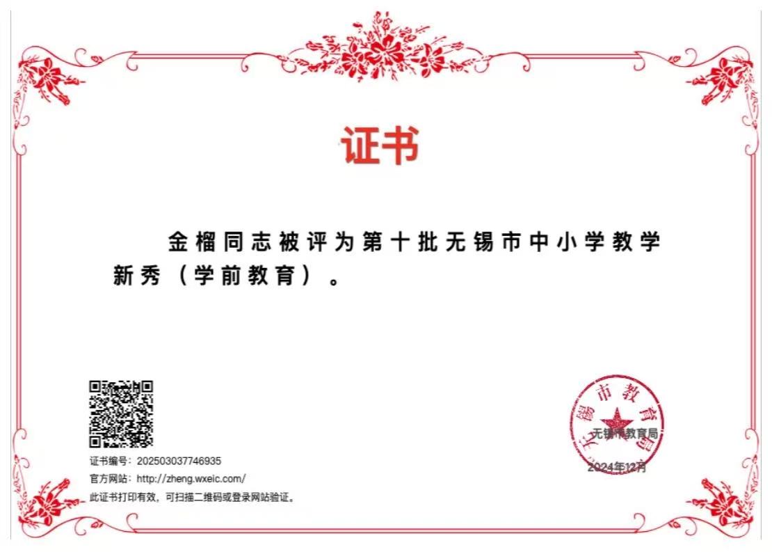 金榴老师被评为第十批无锡市中小学教学新秀
