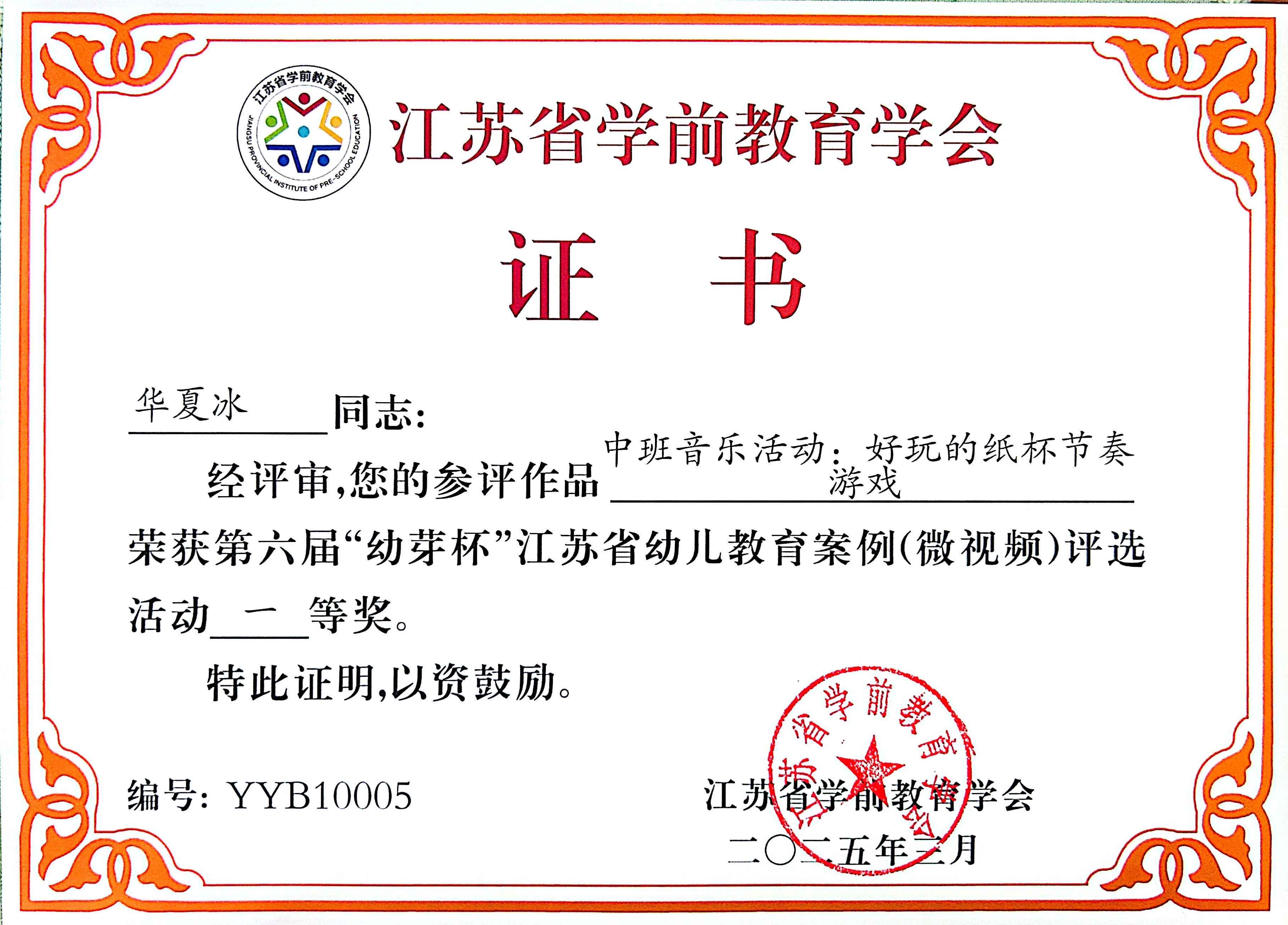 华夏冰老师的《好玩的纸杯节奏游戏》获幼芽杯江苏省幼儿教育案例评选一等奖 2025-09-22