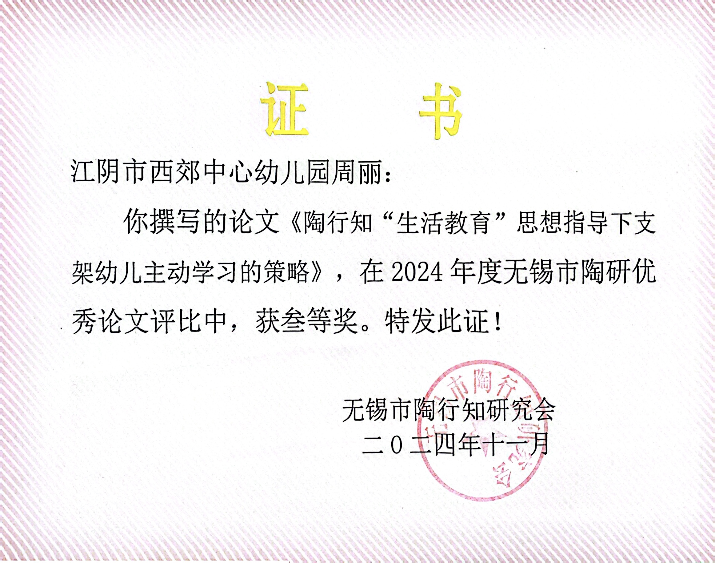 周丽老师撰写的论文在无锡市陶研优秀论文评比中获三等奖 2025-09-22