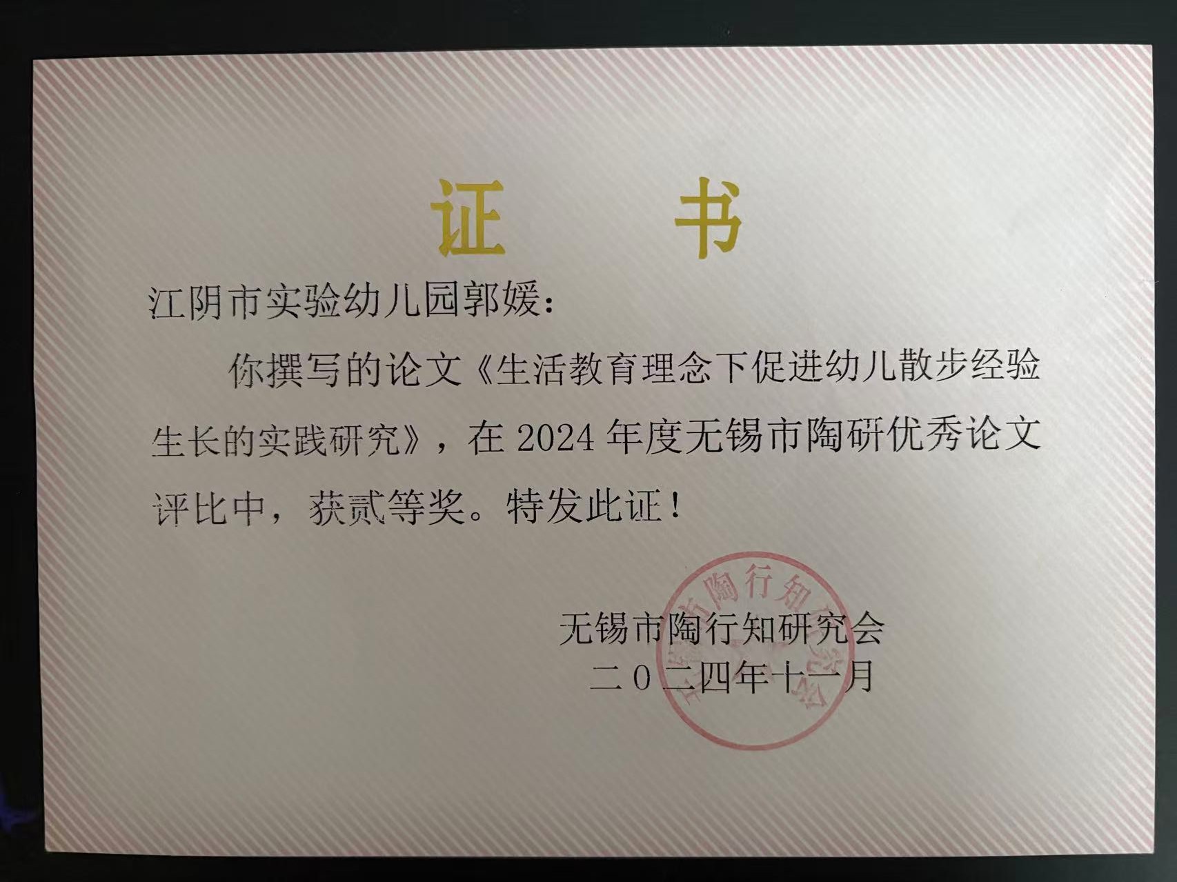郭媛老师撰写的论文获无锡市陶研优秀论文二等奖