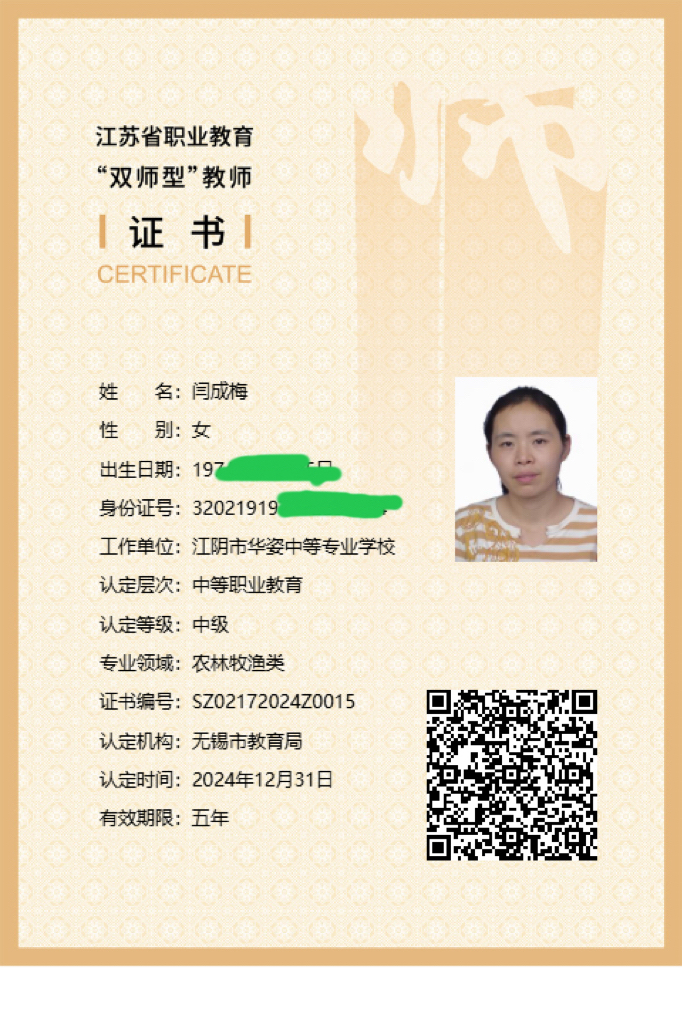 闫成梅:双师型证书
