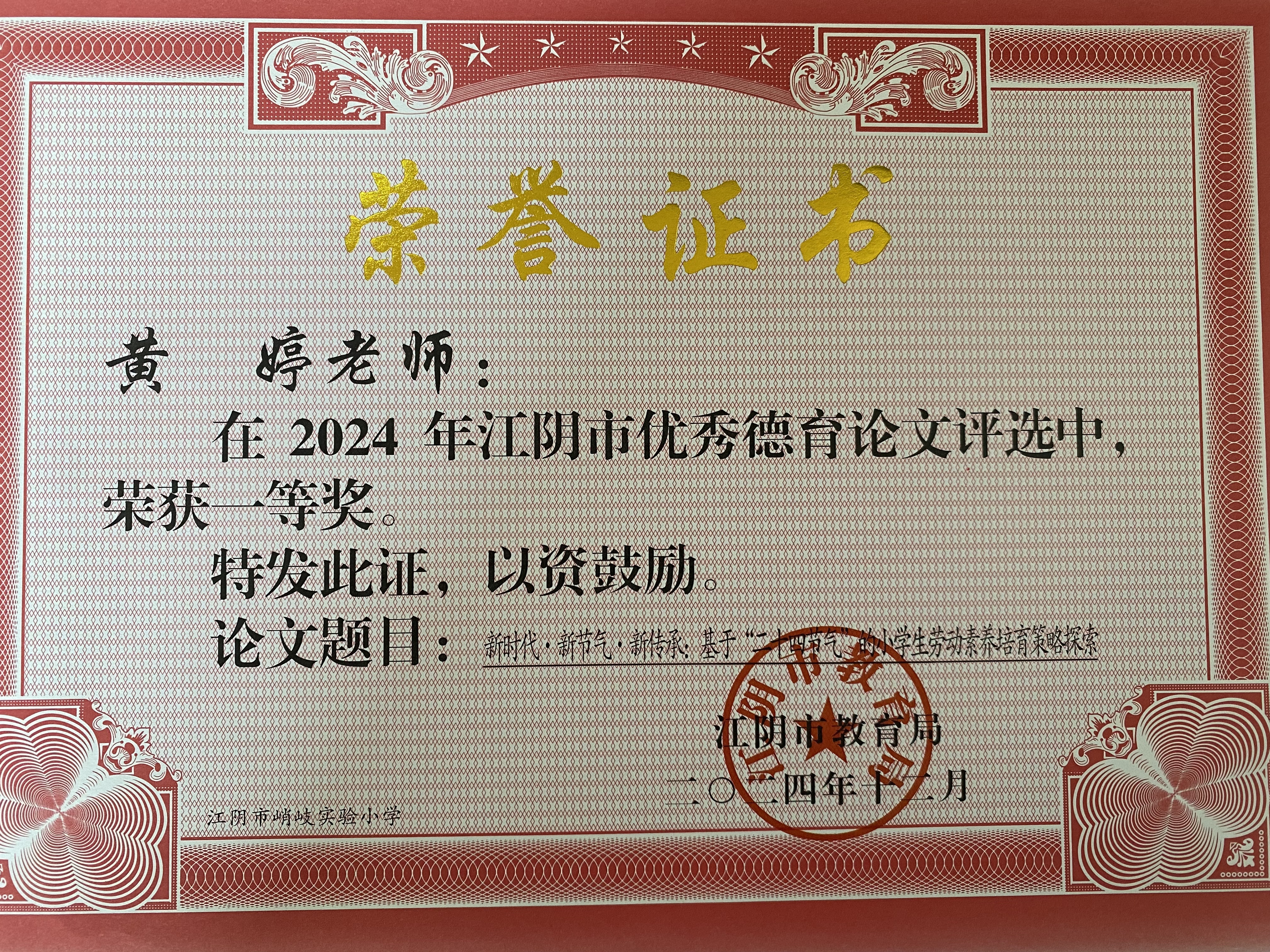 网站类目:研究成果获奖 姓名:黄婷 所在单位:江阴市峭岐实验小学 获奖类别: 获奖级别:县级 获奖等级: 获奖时间:2024-12-12 评比部门: 发表刊物: 刊物级别:国家级 发表时间:2025-09-22