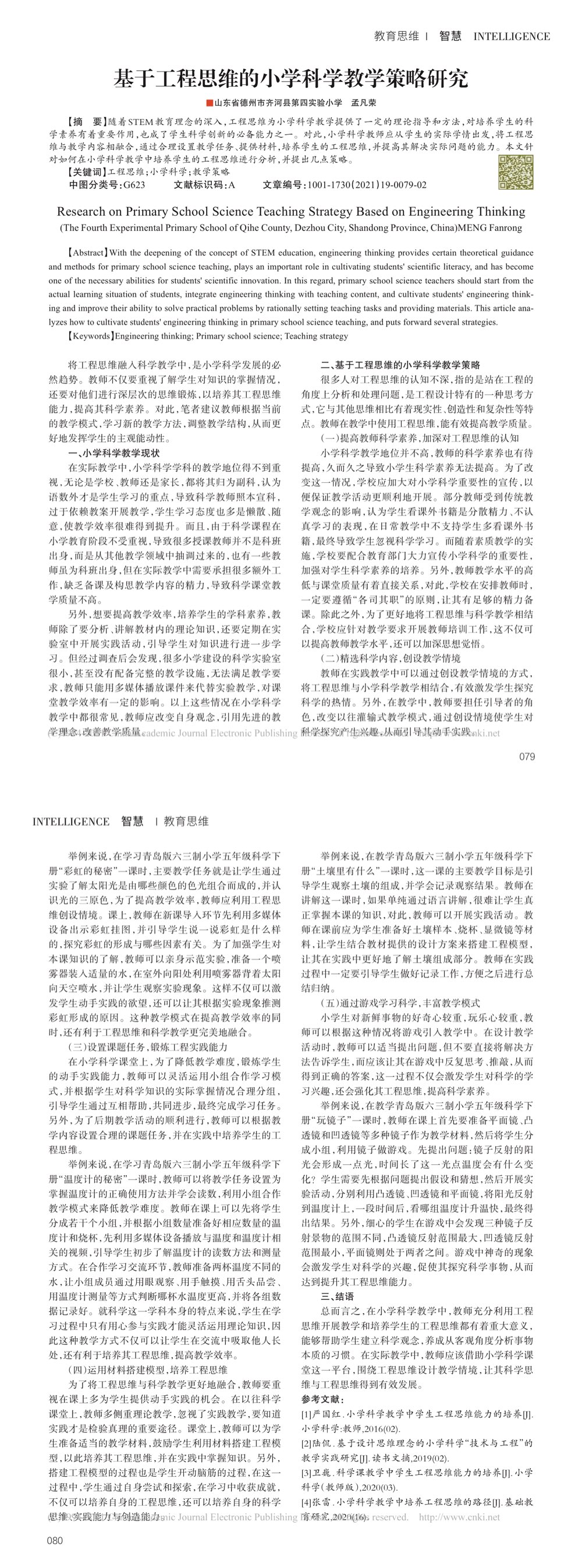 钟宸推荐+基于工程思维的小学科学教学策略研究