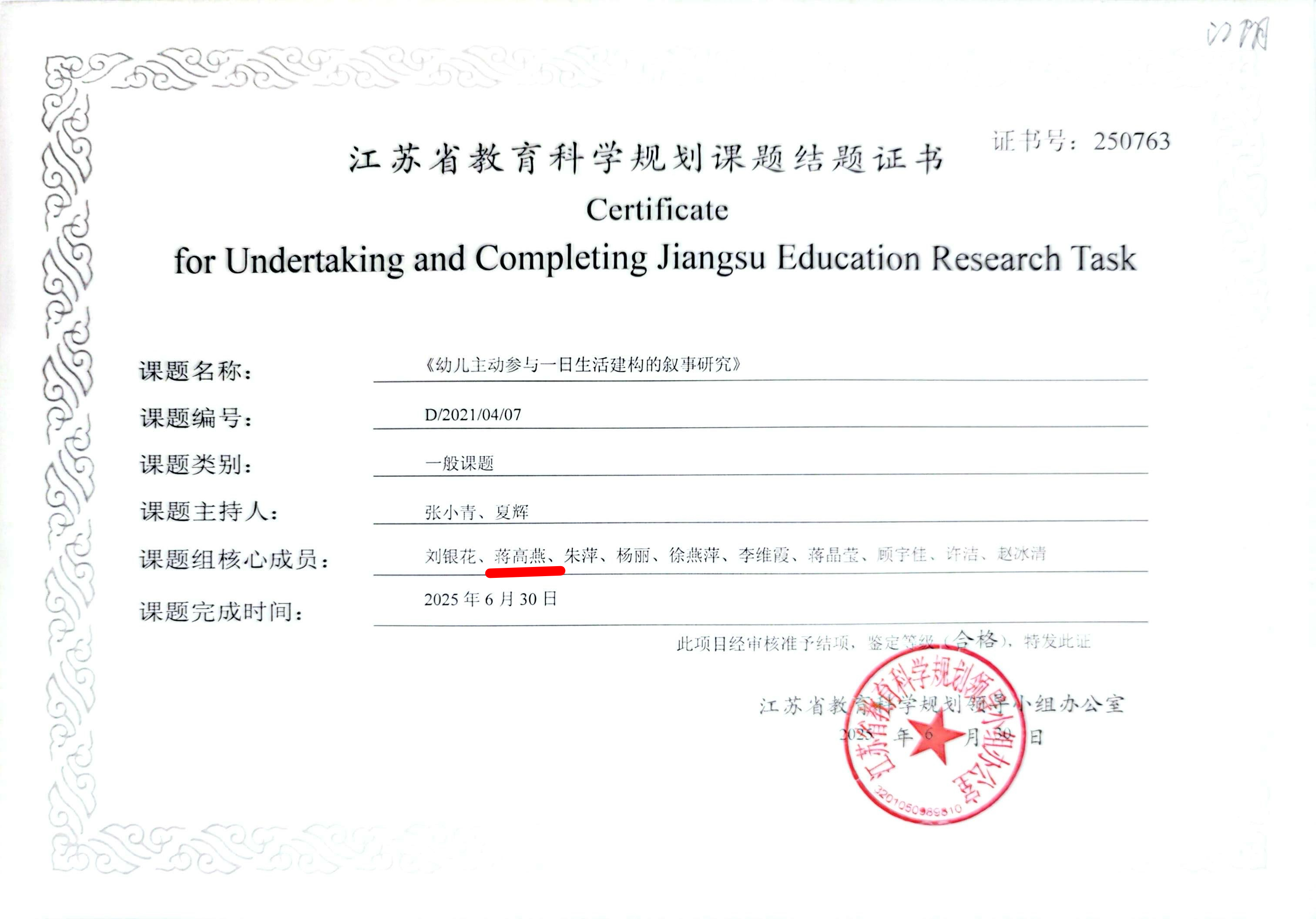 刘银花老师、蒋高燕老师参与的江苏省课题《幼儿主动参与一日生活建构的叙事研究》结题