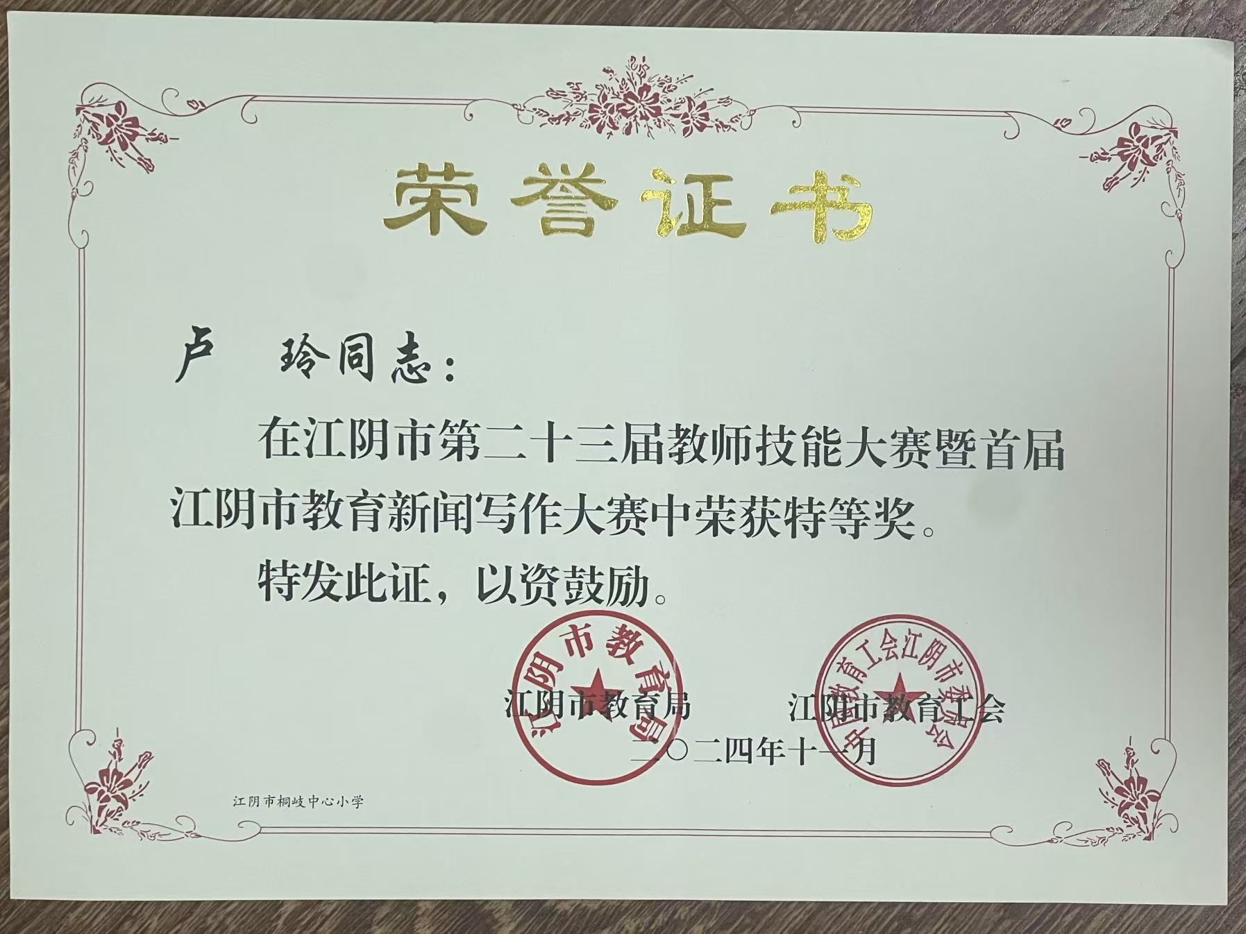 卢玲老师获得江阴市第二十三届教师技能大赛特等奖