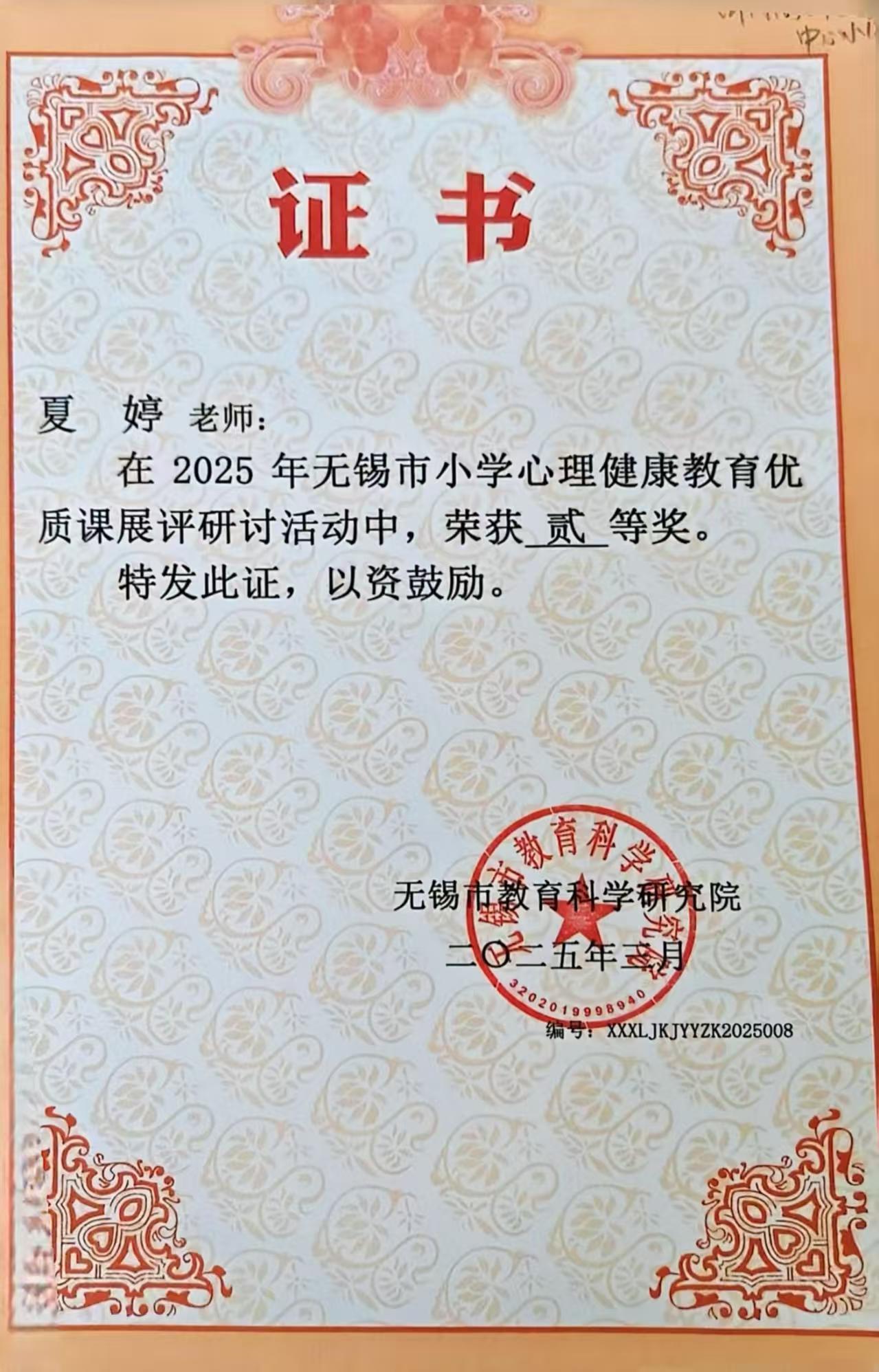 江阴市顾海英德育名师工作室——成员夏婷获2025年无锡市心理健康优质课二等奖