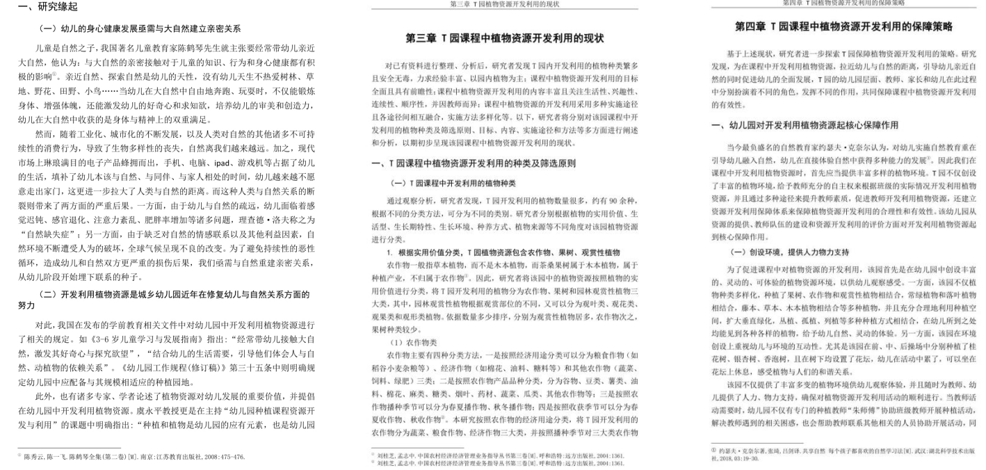 推荐文章:幼儿园课程中植物资源开发利用的现状及启示——基于 T 园的研究