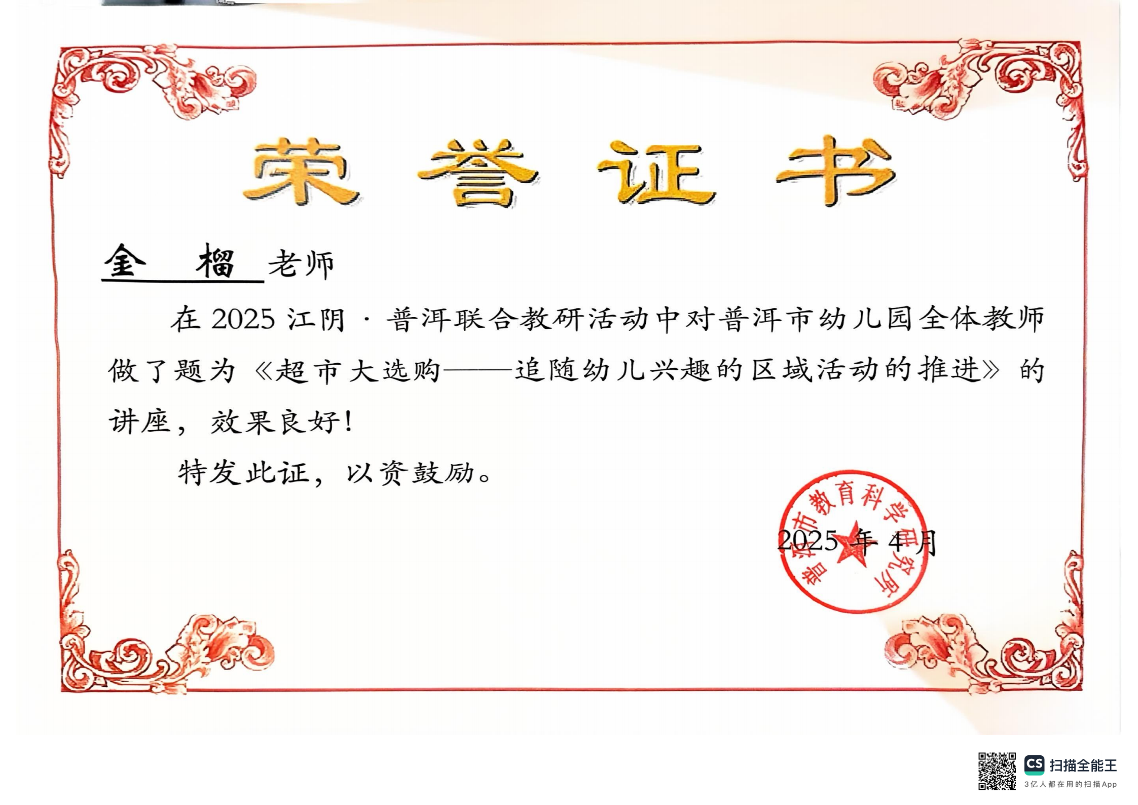 金榴老师在江阴·普洱联合教研活动中做《超市大选购——追随幼儿兴趣的区域活动的推进》讲座 2025-09-22