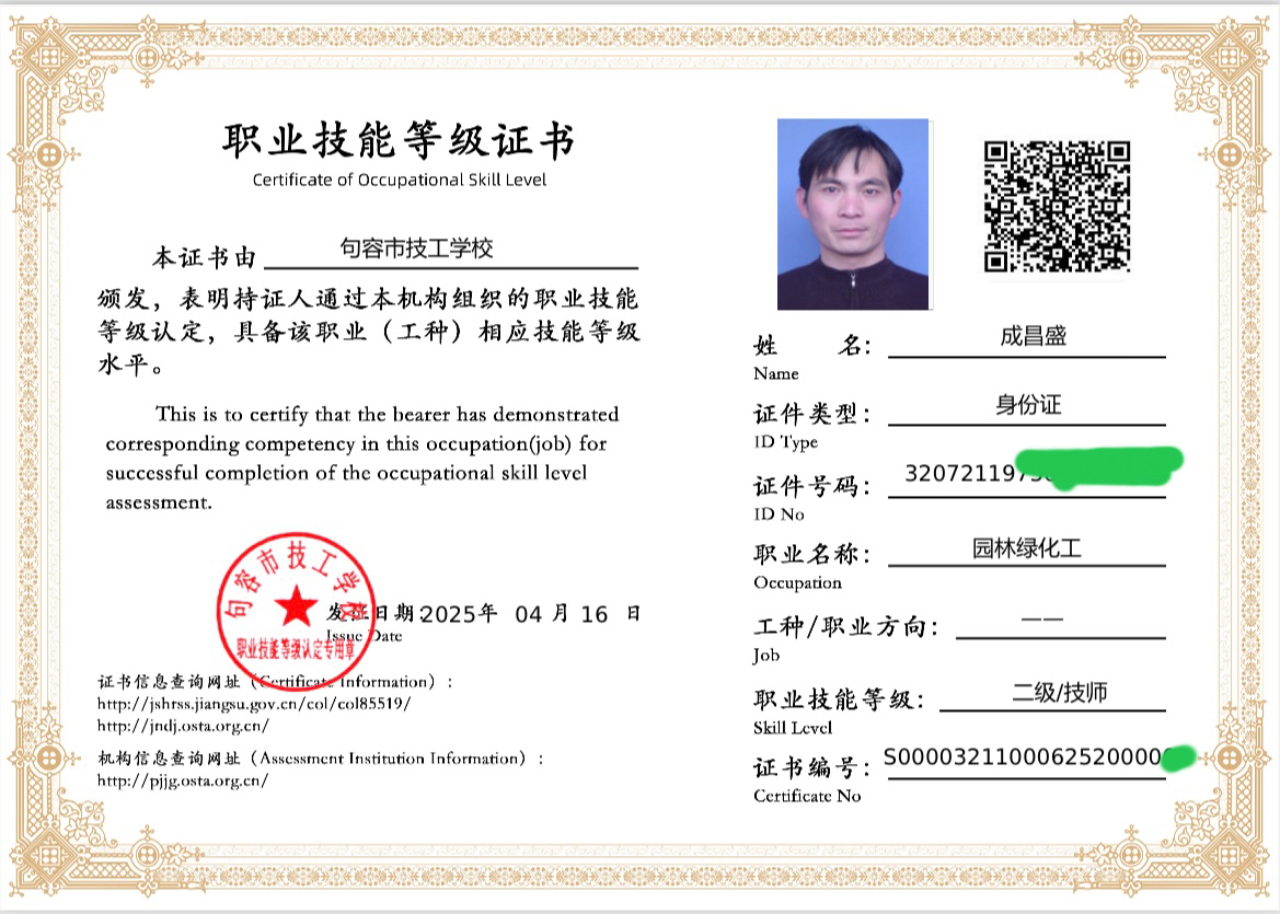 成昌盛:技师职业技能等级证书