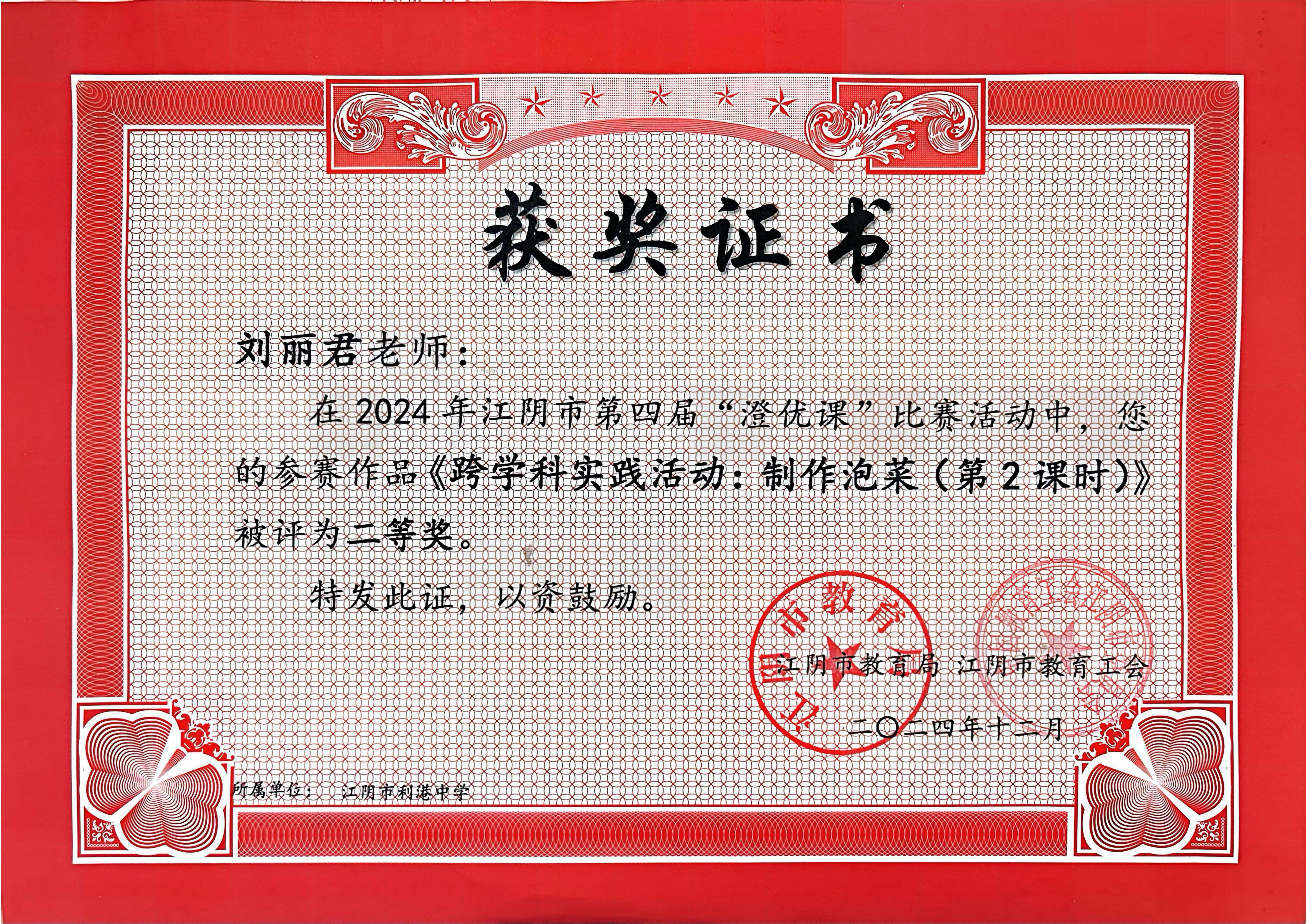 江阴市第4届“澄优课”比赛活动二等奖 2025-09-23