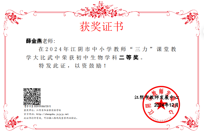 2024年江阴市中小学教师三力课堂教学大比武二等奖 2025-09-23