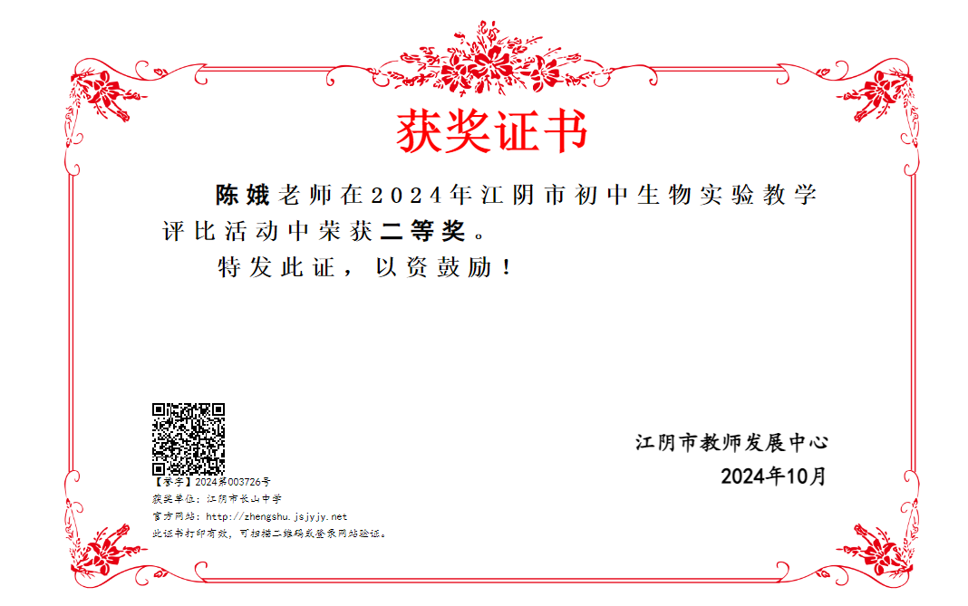 2024年江阴市初中生物实验教学评比二等奖 2025-09-23